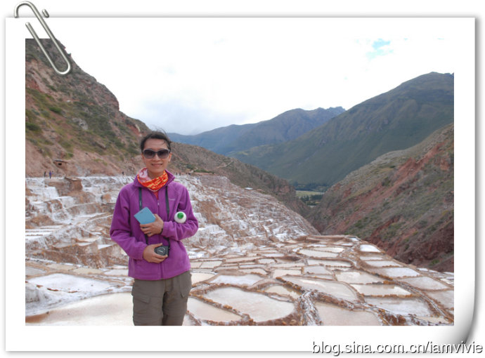 接下来是Muras的盐田,据说这里产的盐比较健康,我看都粉粉的,很是可爱。路边很多卖小吃的,什么香蕉干啦蚕豆啦,不买也可以先尝尝,导游还给了一把姑鸟儿给我们吃,很是奇怪怎么能生长在这么热的地方,不应该是东北才有的吗,加拿大有不稀奇啊,这里怎么会有,尝了一下,和国内的味道不太像呢。在这儿买了第一个冰箱贴,是穿秘鲁传统服装的娃娃的2sol,一直想买个大的娃娃带回来,可是路上看到的做工都很粗糙而且表情都很诡异,回来的时候在利马机场看见一个特美的,结果要200多sol!穷人买不起哎。。。细细在这里也很高兴的买到了给嘉嘉的草泥马玩偶–灰灰。