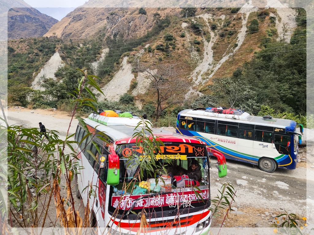 Muktinath到博卡拉,可以拼车坐吉普车,也可以坐当地小巴车。根据我来的路上的吉普车上哭爹喊娘的体验,我对它咬牙切齿深恶痛绝,所以就算节省时间也是完全不予考虑的。背夫前一天就帮我把我们的小巴车票买好了,我有点惊讶的是居然要一千三百多尼币一张车票,因为我来的时候只要六百多而已,贵了一倍,可能这一段比较难走而且大部分都是外国游客,所以价格就相对而言高出很多。
