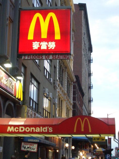 从地铁站口出来看见了麦当劳的招牌,确定我们来到了唐人街。是中文繁体字哦。