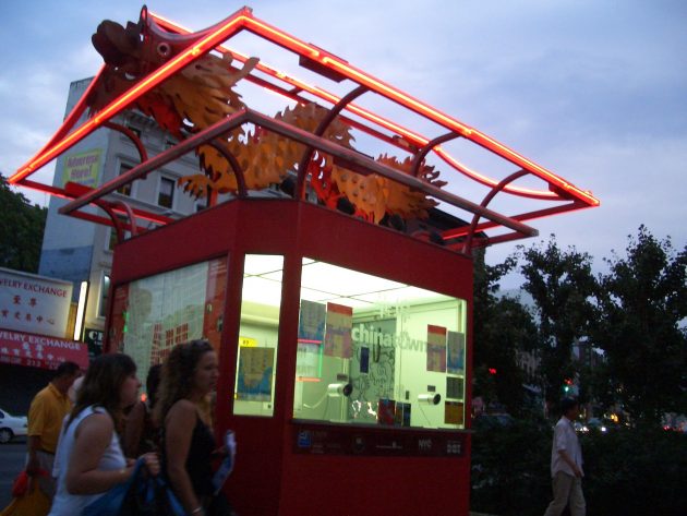 这个是唐人街的问讯处,上面还有条龙,我觉得很可能有中文服务呢。