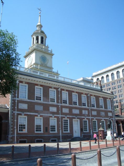 在公园的另一侧独立大厅,也就是曾经的滨州议会厅,第二次美洲会议在这儿召开,独立宣言也是在这儿通过的。