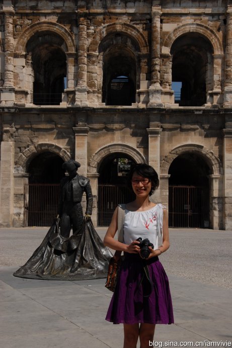细细带了道具眼镜用来拍照,我也带上过过瘾~~背后的那个是个什么斗牛士,也是尼姆的民族英雄。