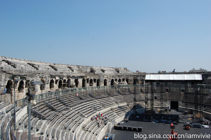 这个角斗场后来作改建作为斗牛场使用,现在还会举办些音乐会什么的。没想到Rammstein的Live Volkerball还有Metallica的Français Pour Une Nui都是在这里录制的!现在内部正在搭舞台,看到路上的海报说是要有音乐会。