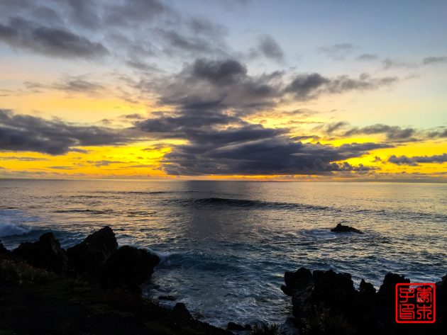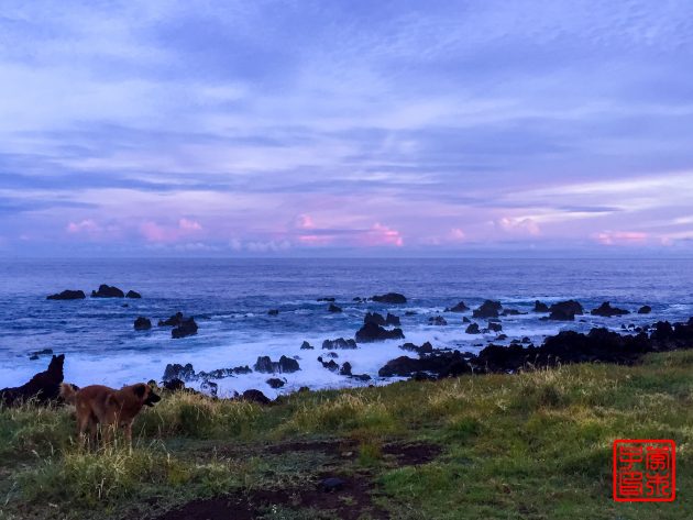 每天坐在门口就能欣赏到美丽的晚霞,面朝大海,春暖花开。天黑的实在太晚了,九点半才能等到夕阳,不过真的是很美。实在是很喜欢复活节岛,我决定,如果假设还能等到结婚那一天,我的蜜月地就定在这里了。大溪地飞复活节岛一周也有一班飞机的,所以就飞大溪地–复活节岛–圣地亚哥,很顺路很圆满,哈哈。