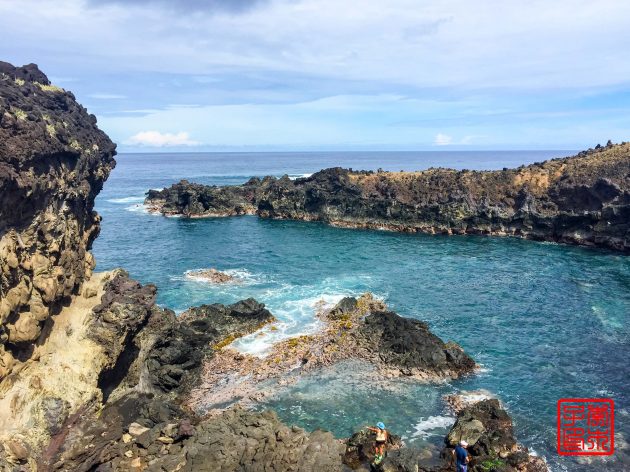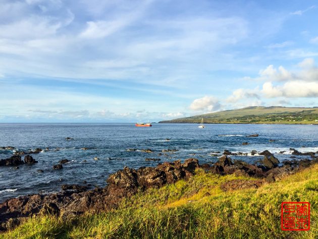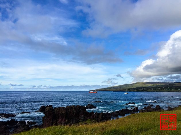 我最爱的海岸线,以前只知道复活节岛有石像,没想到还有无敌的海景,蓝色真的好美哦,陶醉不已。