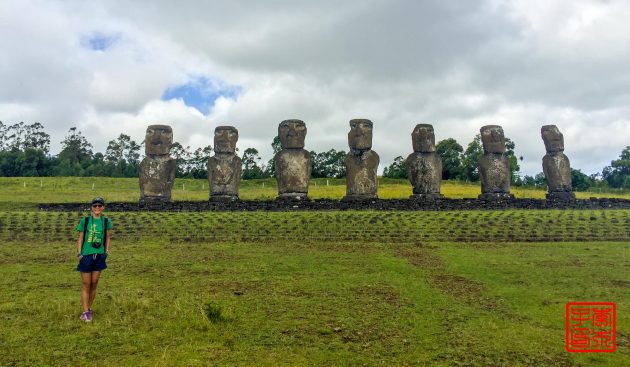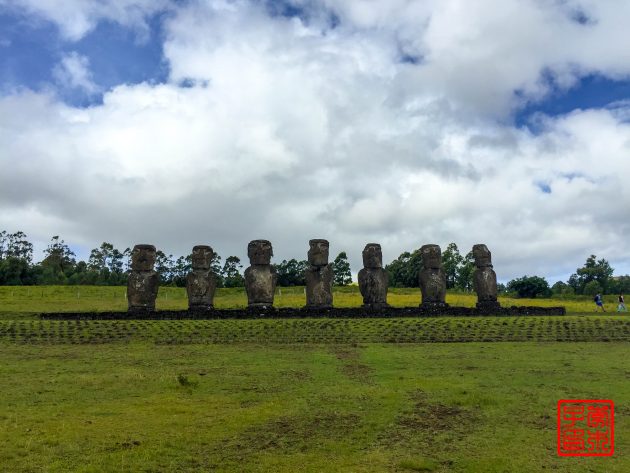 接下来是岛上的特产阿胡,Ahu Akivi,这七尊是在内陆的,代表着最初的七位年轻探险家。来到岛上第一次看到阿胡,亲眼见到好激动,七连排,唯一的面对大海的!和其他阿胡一样,他们也是按照天文而放置的,在春分或秋分时会直面夕阳。