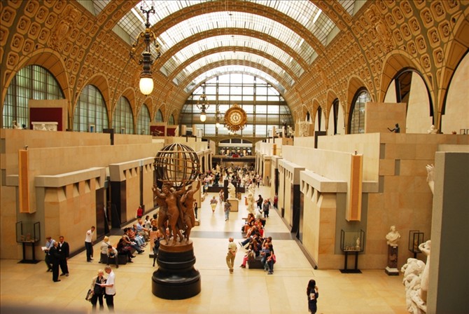 走到这里我们就没有沿着香榭丽舍大道往前走了,我们转弯从亚历山大桥穿过,去参观奥赛博物馆。奥赛博物馆是主要收藏1848 to 1915之间的近代法国艺术品,他更为著名的是收藏了大量印象派以及后印象派的绘画作品,包括我们熟知的莫奈,梵高,塞尚,高更,德加还有Renoir。这个博物馆是由火车站改造的,里面到处都有不让照相的标志,不过没有人管,貌似大家都在照,至少大厅里没人管。虽然这个博物馆没有很大,但是却是有很多重量级的作品,顶礼膜拜了一下~~我们去的时候还有莫奈的特别展出,单独卖票的,我想过去看的时候已经结束了,唉。