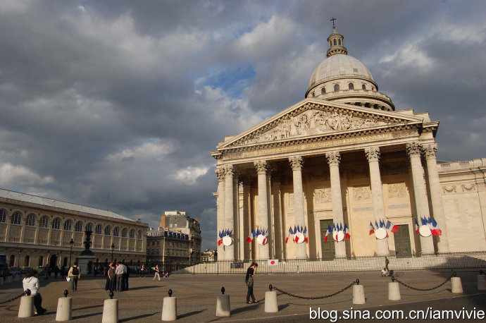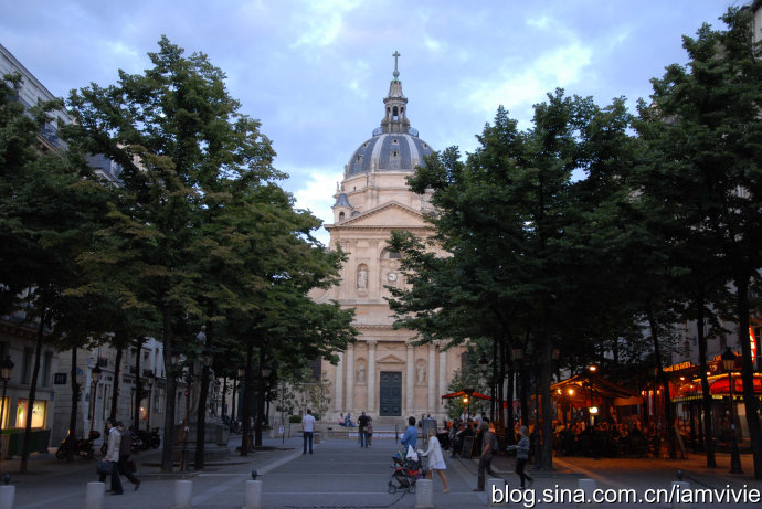这个建筑是新古典主义建筑的早期典范,其正面仿照罗马万神殿(Pantheon in Rome),拱顶为布拉曼特风格。可惜我们去的晚关门了,回来看了内部的照片觉得没看到挺遗憾的。先贤祠附近就是拥有悠久历史的索邦大学了。