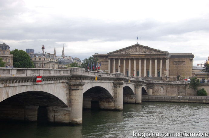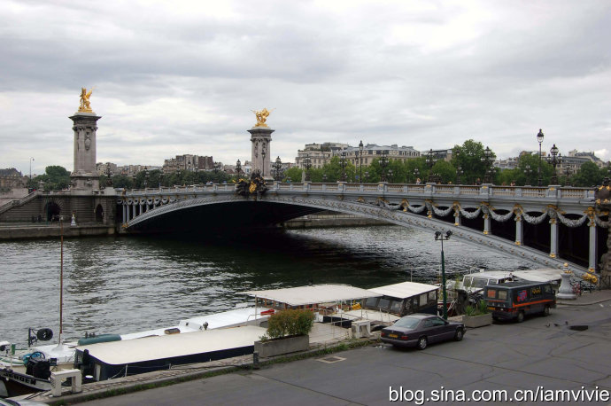 说一下巴黎的天气,巴黎还挺冷的,街上穿什么的都,羽绒服的,短靴的,在蒙特利尔都没见到穿这么多的。。。我们去的那几天,规律得很,都是上午阴天,中午下雨,下午到傍晚的时候开始艳阳高照。早上拍的照片,经常天空都是乌云压顶,等下午天好了之后,同一个景点还要重拍。例如塞纳河,走过去狂拍一阵都是黑压压的乌云的,走回来又要重新来一轮蓝天的。法国的许多重要文化建筑都围绕着塞纳河两岸,在巴黎市区内的塞纳河上有大约37座,每一座都有自己的特点。最古老的是连接圣母院那个岛的Pont Neuf,个人觉得最漂亮的是荣剧院前面的亚历山大三世桥,非常的华丽。下面的第一张是亚历山大三世桥,另外的是一些其他的桥,名字我也搞不清楚了。