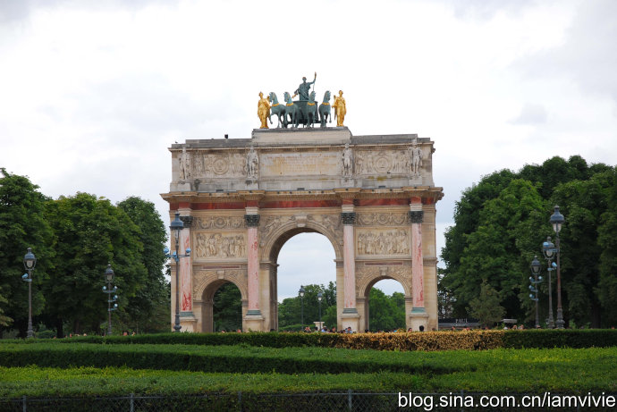 走回卢浮宫,沿着著名的巴黎中轴线一路走过去。先近看了卡鲁索凯旋门(Arc de Triomphe du Carrousel)。