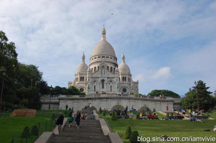 从凡尔赛宫出来,我们就去往蒙马特高地(Montmartre)。这地区是艺术家的聚集区,也是娱乐中心,大名鼎鼎的红磨坊就在此地。我们剩下的时间和脚力就只够参观圣心教堂(Basilique du Sacré-Cœur)的了。