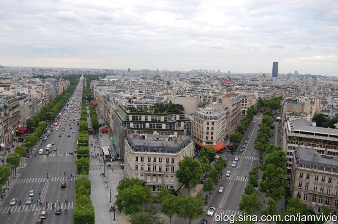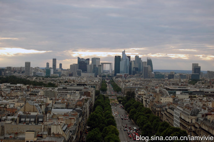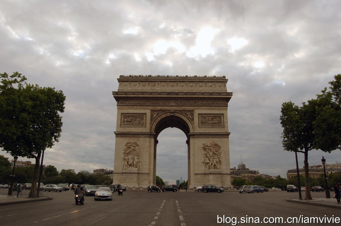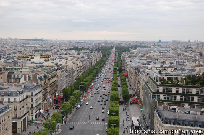 出了地铁站,立刻看到车来息壤的一派欣欣向荣景象的香榭丽舍大道,感觉还不错。前面提到过,这个凯旋门比那个小凯旋门质感好很多,还是有一种威严雄伟的感觉的。凯旋门是拿破仑为了炫耀国力庆祝战争胜利建造的,后来被推翻以后工程就搁置了,直到后来波旁王朝被推翻后才继续修建,前后大约30年才建成。凯旋门是可以登顶的,只是没有电梯。。。爬上去累得我们半死,不过还是值得的,在凯旋门顶上可以鸟瞰巴黎名胜,看到以凯旋门为中心向四周延伸的十二条主要街道,还能看到中轴线的终点–拉德芳斯区新凯旋门(La Grande Arche de la Défense),这个建筑的目的是修建一个具有人类与人道主义理想纪念碑,而不具有军事胜利带来的意义。从凯旋门上下来,我们就沿着香榭丽舍大道逛逛,以前我以为这条街上都是些大品牌的专卖店,这条街这些天我们从头走到尾发现原来不是这样的。这条街上有大部分品牌的汽车专卖店,这一点我不明白为什么。还有几家名牌店,例如LV,数家平民品牌,例如Zara,还有众多餐馆酒店什么的。天色已晚,大部分店已经关门了,我们结束了一天的奔波回到旅馆。