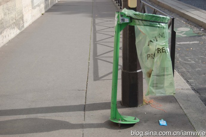 注意到巴黎一个特别的地方,巴黎的垃圾桶不是桶,是只有一个架子,然后上面套塑料袋子的,也真够小气,哈哈。后来知道做成这样原来是防止炸弹。
