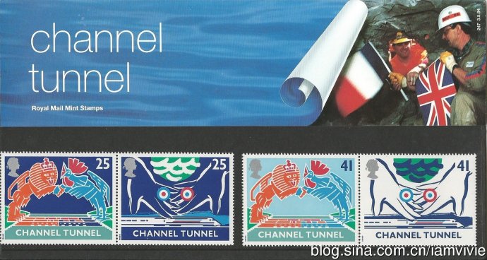欧洲之星坐上去和普通火车也没什么差别,一段时间后开出法国之后,就进入一片漆黑的海底隧道,这个还蛮新鲜的以前没做过。时间挺久,大概半小时,我耳朵一直处于耳鸣状态,一直盼望着窗外能早日出现亮光啊。路上我就琢磨,万一车就坏在海底隧道里了,要怎么半呢?!后来回来查一下,确实有过几次电力故障什么的游客在海底隧道里被困好几个小时,这。。。所以平时还是要多积攒人品的。在湖区的时候买到了1994年皇家邮政发行的英法两国共同设计的海底隧道的纪念邮票,嘿嘿,扫描上来显摆一下,这工程确实还挺牛的。