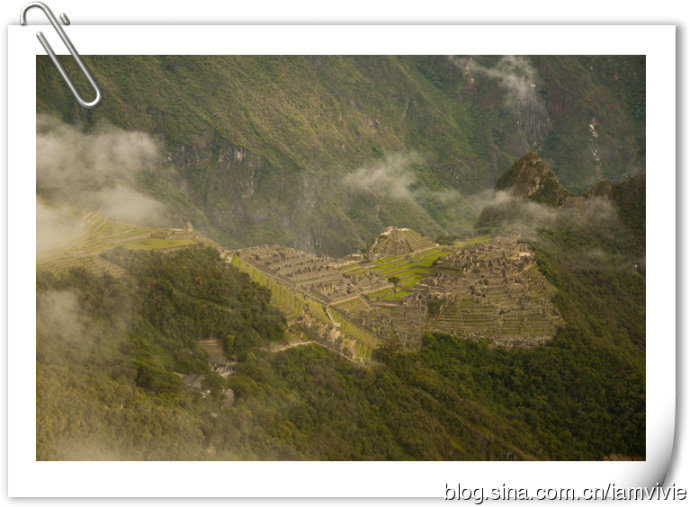 徒步了四天,大家都很疲倦,到达终点变得一副兴趣缺失的样子。最后自由活动时间,除了我以外,竟然没有一个人想爬到顶上俯视一下马丘比丘。我是还有余力,而且觉得都到这里了不去多可惜,就一个人去爬了。爬到顶上守卫人的小屋以后,上面继续徒步还有个桥,入口处还要登记,据说要十五到二十分钟的样子,不想让大家在下面等我太久,我就没去。这就是大多数明信片的取景角度,真是一样一样一样的。回来拿这一张当电脑桌面,同事犹豫了好几天才问我,这是你从网上下载的吧。。。矮油!