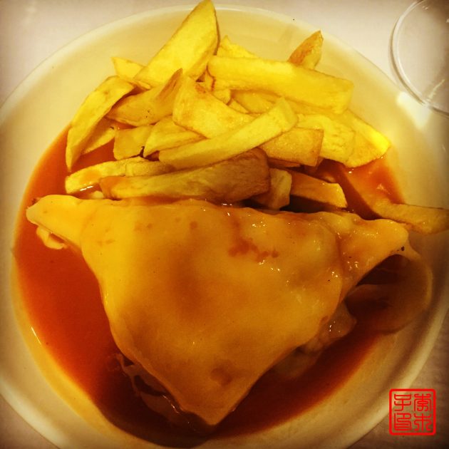 午餐吃的源于波尔图的特色三明治Francesinha,里面是各种肉外面面包被起司浇汁儿覆盖,看着就满满的卡路里的感觉哈哈。我还挺喜欢吃的,就是真的很饱腹,半份才刚刚好。