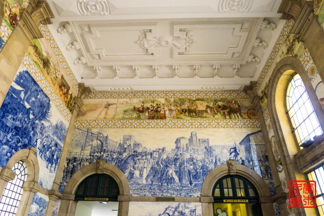 波尔图的圣本托火车站San Bento,里面镶嵌在墙上的两万块蓝色手绘瓷砖,非常的壮观。