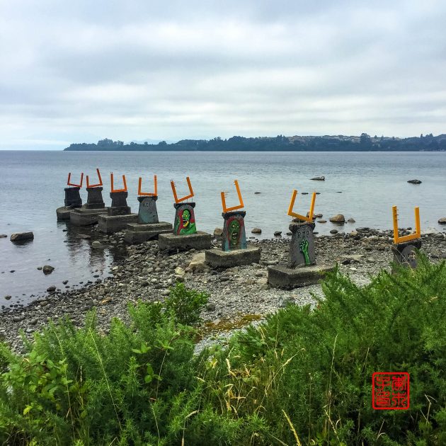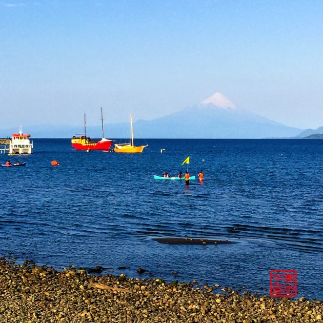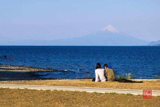 这个大湖是Llanquihue Lake延基韦湖,是智利第二大湖,湖畔很惬意,可以看到三三两两休闲的人们。湖边可以看到两座火山,形状比较漂亮的是Osorno火山,名字也好记。另外一个奇怪形状的是Calbuco火山,我和Camila每次提起到后者,想不起来名字,就说那个ugly的。。。