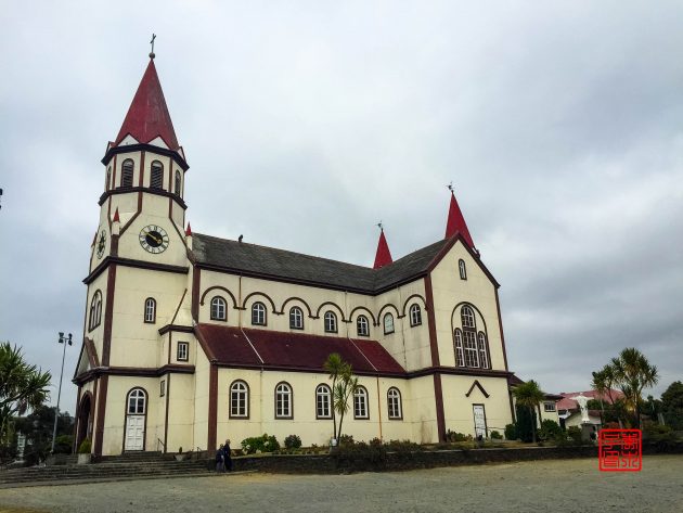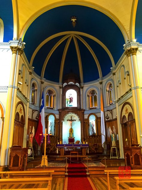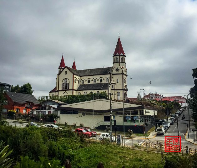 Sagrado Corazón de Jesus/Sacred Heart of Jesus Church建在小山坡上,所以很醒目,这个天主教堂是德国后裔仿造德国教堂建造的,蛮漂亮的,框架是用橡木建成的。
