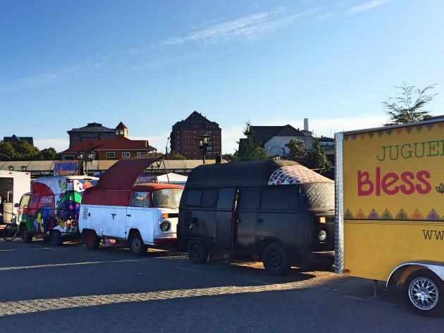 湖边一排各有特色的小餐车,设计的好可爱,每天的吃喝就都在这里解决了。