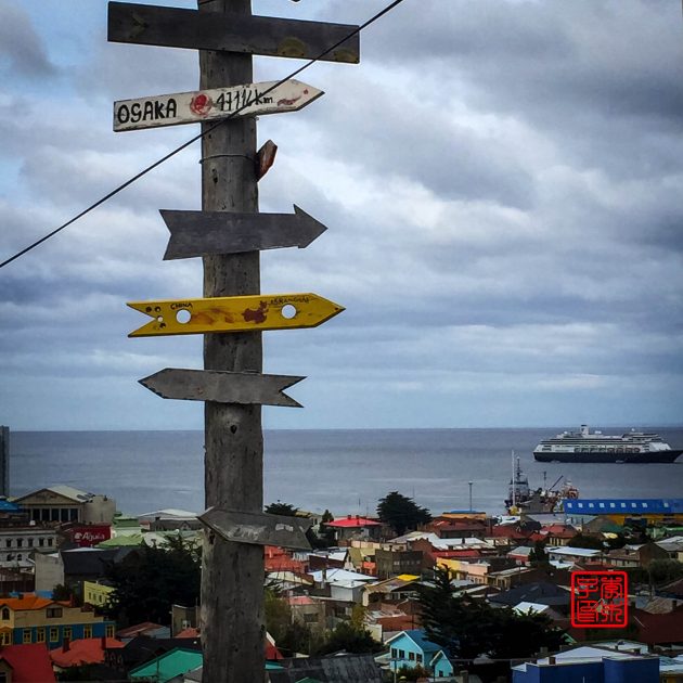 在La Cruz小山坡上有观景点Mirador Cerro de la Cru,可以俯瞰城市和麦哲伦海峡。距离北京才一万二多公里,感觉不是很远啊,哈哈。