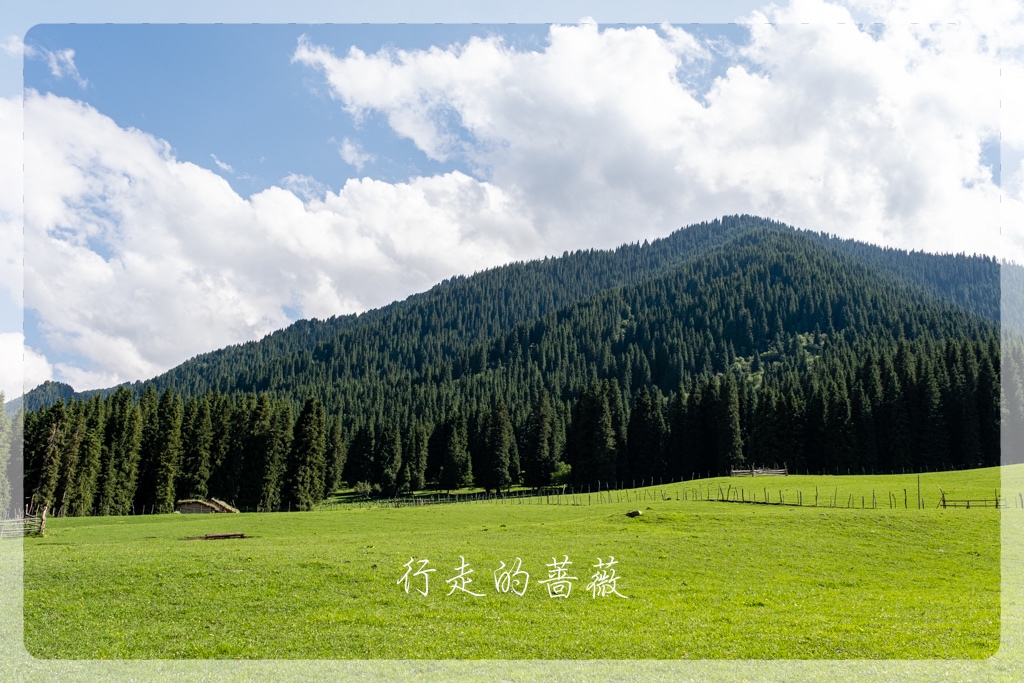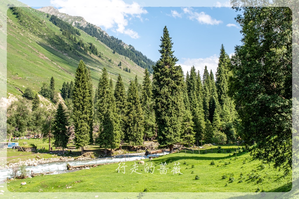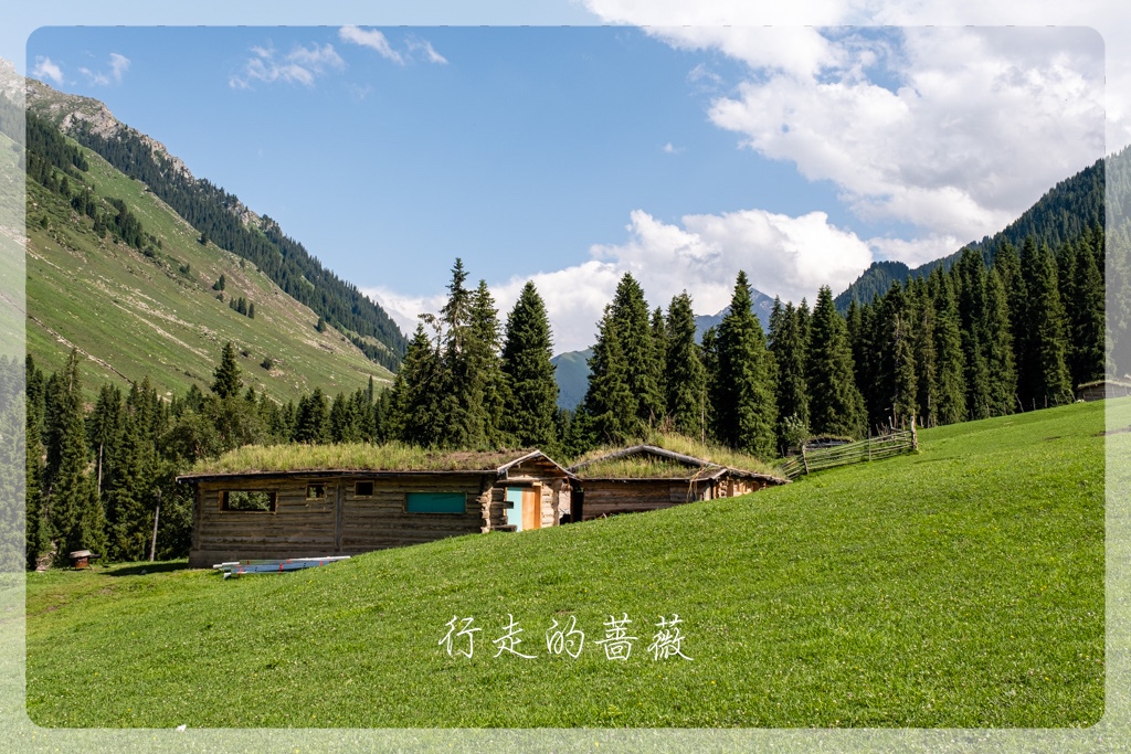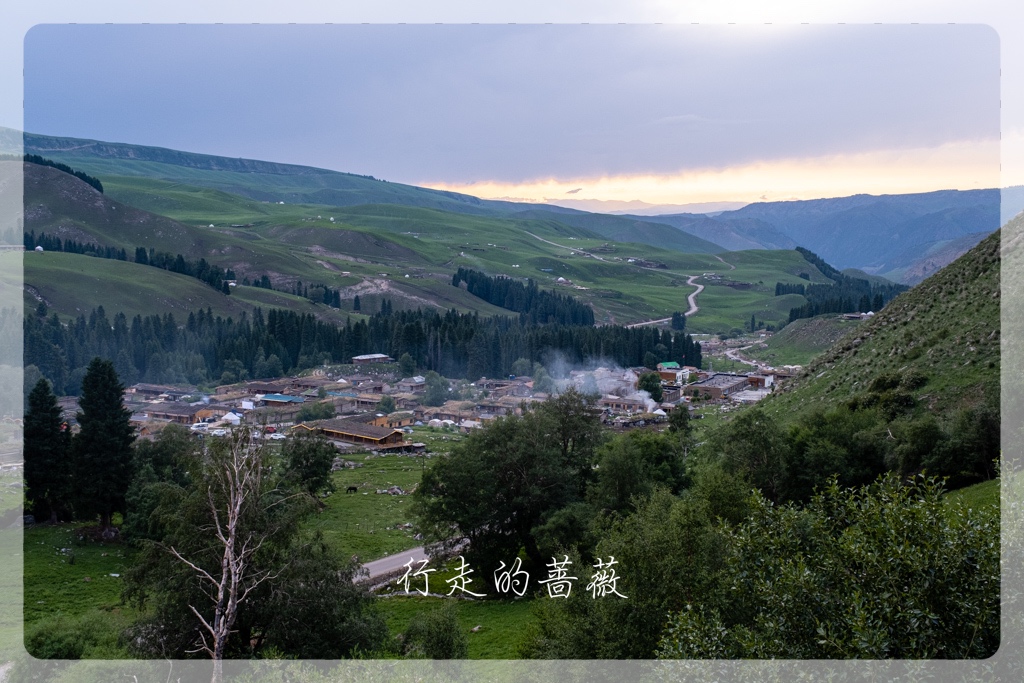 琼库什台是国家历史文化民村,这里不仅是喀拉峻徒步起点,同时也是著名的乌孙古道的起点。大家其实都是超级想去走乌孙古道的,但是我实在是不想天天趟水过河,来新疆前,挑来挑去不用淌水的长线就只剩下喀拉峻大环线了。所以,虽然没办法去,还是想来朝圣一下的,前阵子Lily好像刚来过这里,还在乌孙古道的石头前照了相。可惜,我们来之前,乌孙古道因为暴雨,所以现在封路,不让徒步者进入。果不其然,通往大石头的路前面有一个人,把试图进入的人都拦住不让进。我只是想和石头拍张照呀,也是没办法,看到一些背着大包一看就是准备徒步乌孙古道的人,也被劝退,真是有够惨,毕竟来之前谁都不知道不能进了呢。