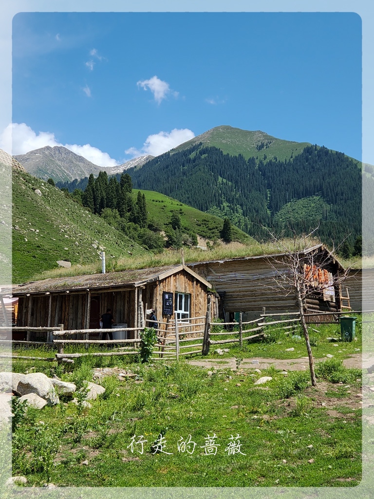 回来的路上,看到同团的姐妹们,我们也一起坐下来吃了烤包子和冰淇淋。村子里东西都贵且味道一般,不过在这种景点,也是没办法的。村里的哈萨克族人夏天都把房子租给外地人来做生意,他们自己在外面牧场放牧。我们去的时候,村里还在大兴土木,可以想见房子会越来越多,价钱也会越来越贵。去年好像在xhs上琼库什台就成了网红点,我们去的时候确实很热闹,已经感觉村里不堪重负了。所以还是那句话,旅游要趁早,以后很可能会面目全非。