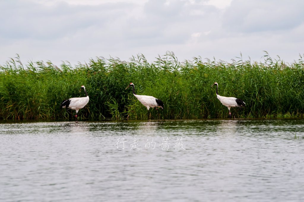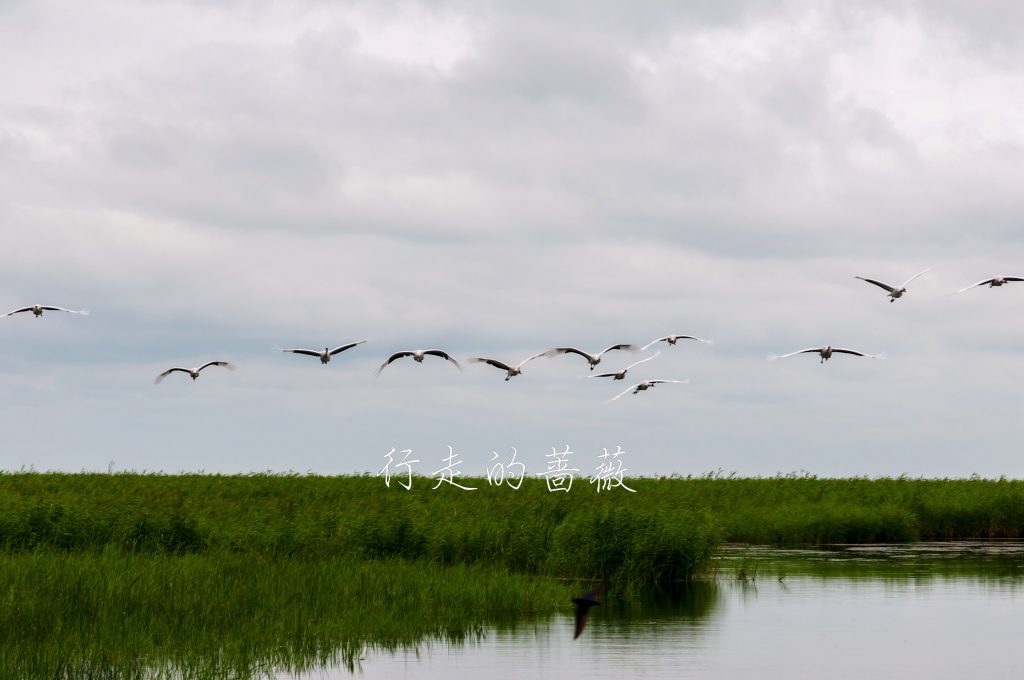 扎龙保护区很大,有大片的湿地,因为今年夏天黑龙江的雨水太多,所以有些栈道都被淹没了,只能在主栈道逛逛。中间能看到一些养在笼子里的丹顶鹤,沿着栈道一直走一直走,在湖边就是每天放飞丹顶鹤的地方。