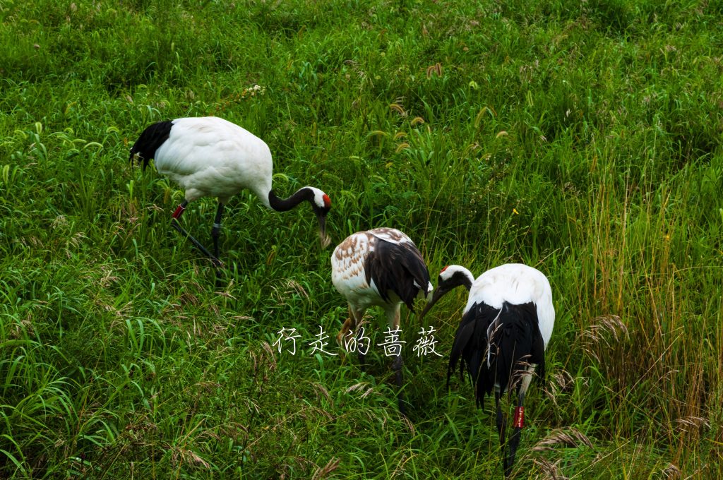 看完放飞以后,在路边竟然还发现了散养的几只,小的好像还没脱毛。丹顶鹤也不是好惹的,不能距离他们太近。有人不信邪的非要合影,结果被追着咬屁股,哈哈哈。