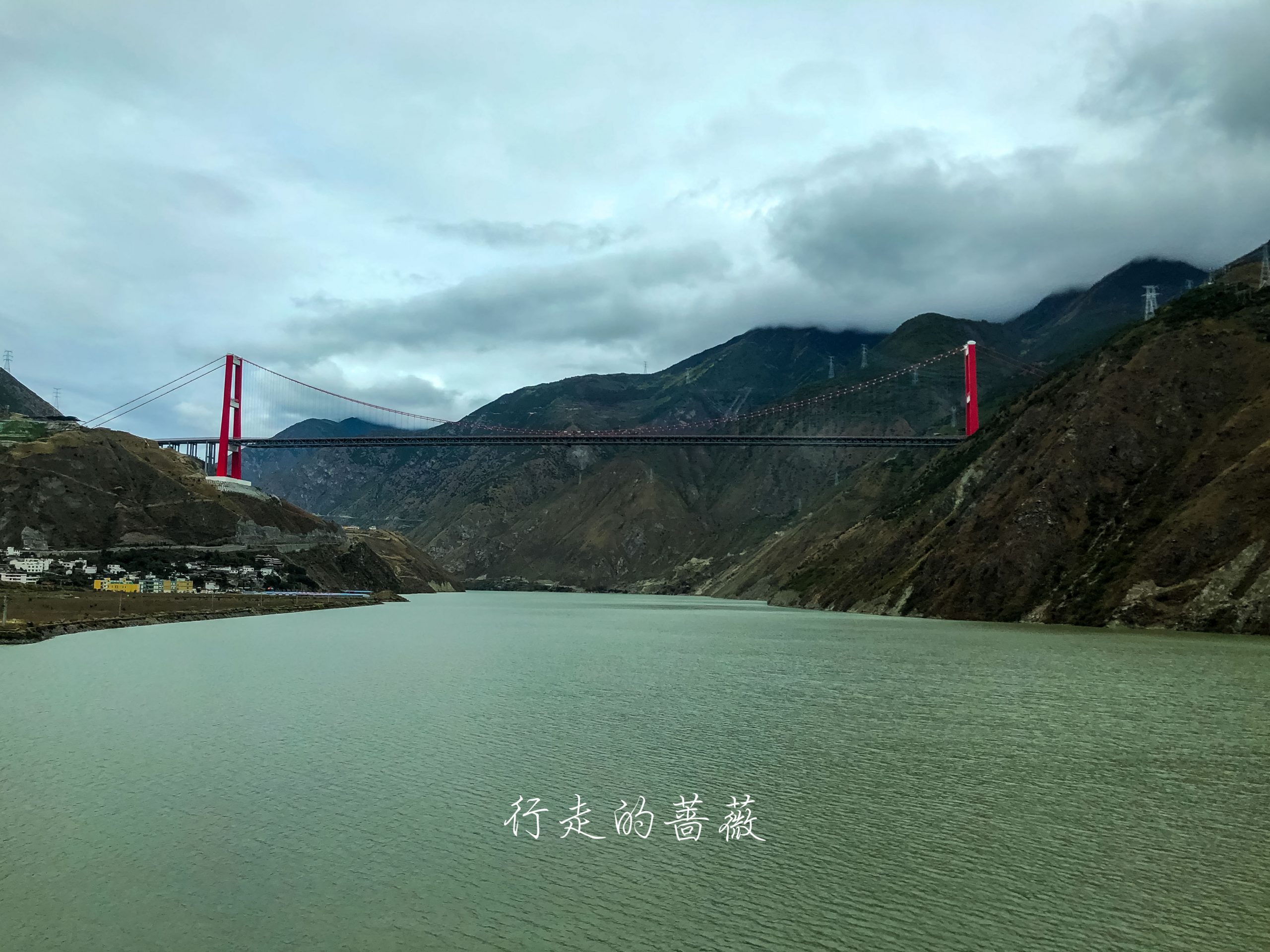 泸定附近经过这一座非常惊艳的红色大桥,妥妥的金门大桥啊!回来查了一下,这座横跨大渡河的网红大桥叫做“泸定兴康特大桥”,也是去年2018年竣工的。在车上抓拍了几张,好漂亮啊!对红色的桥毫无抵抗力,而且建在险峻的山坡上也真是让人惊叹。