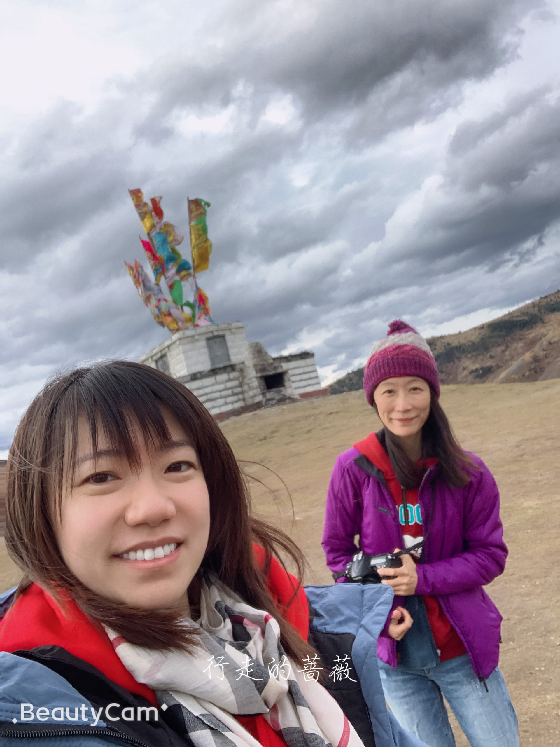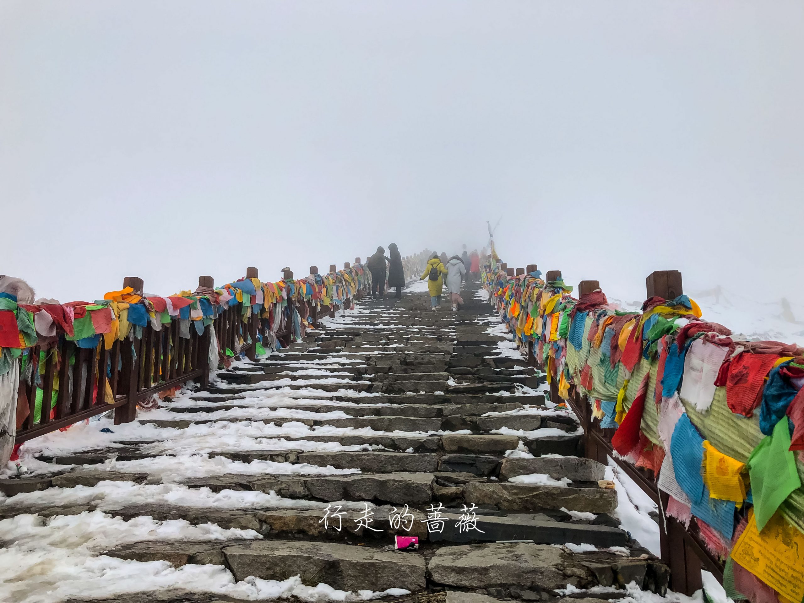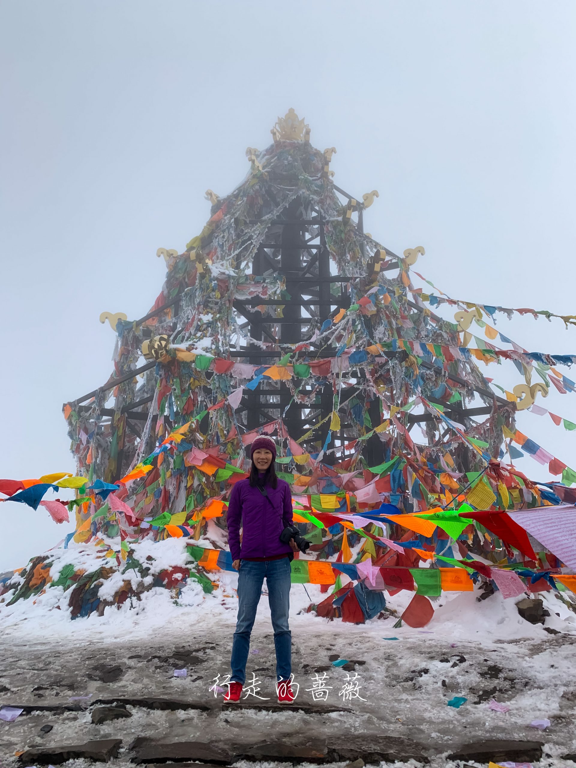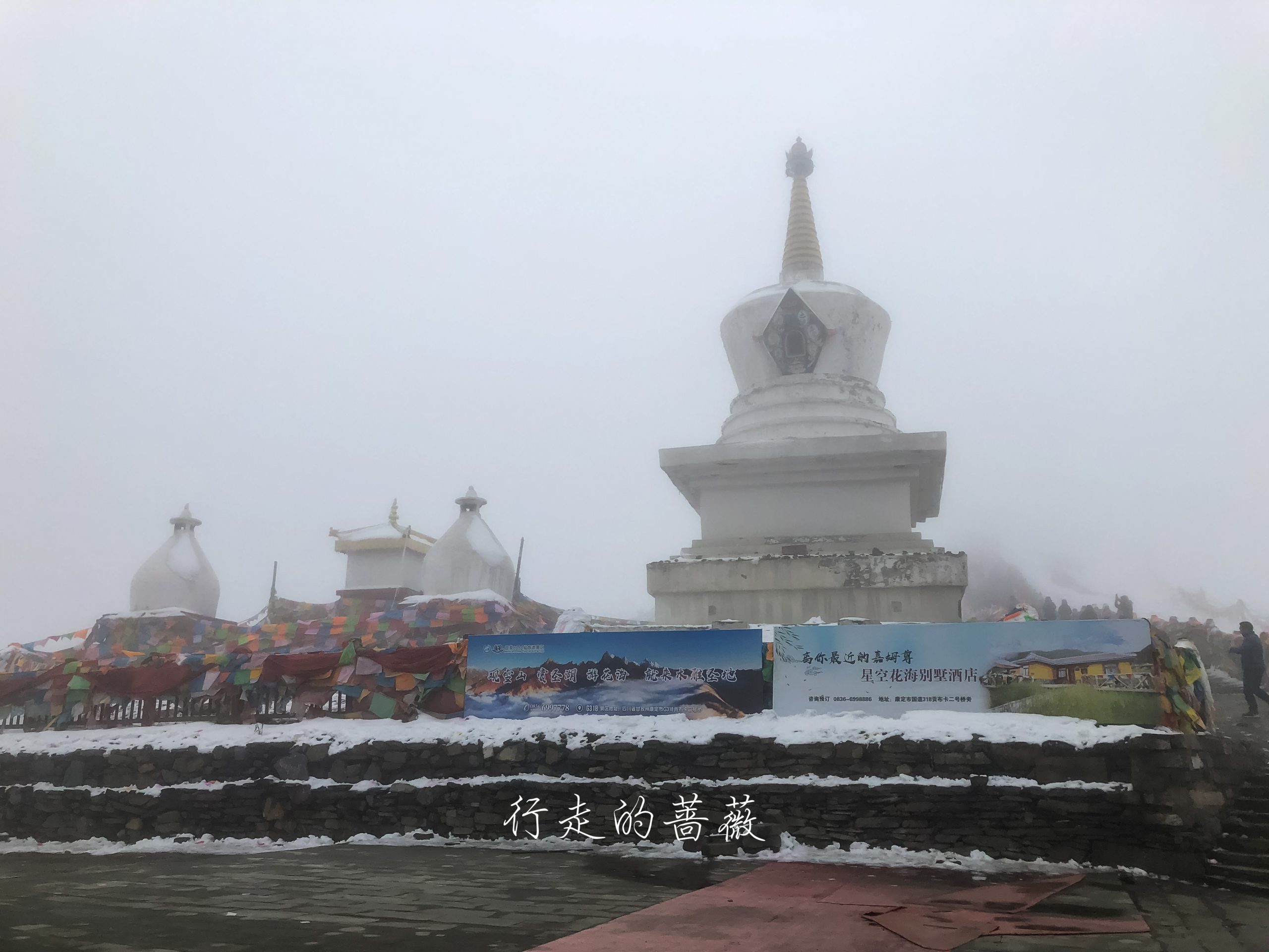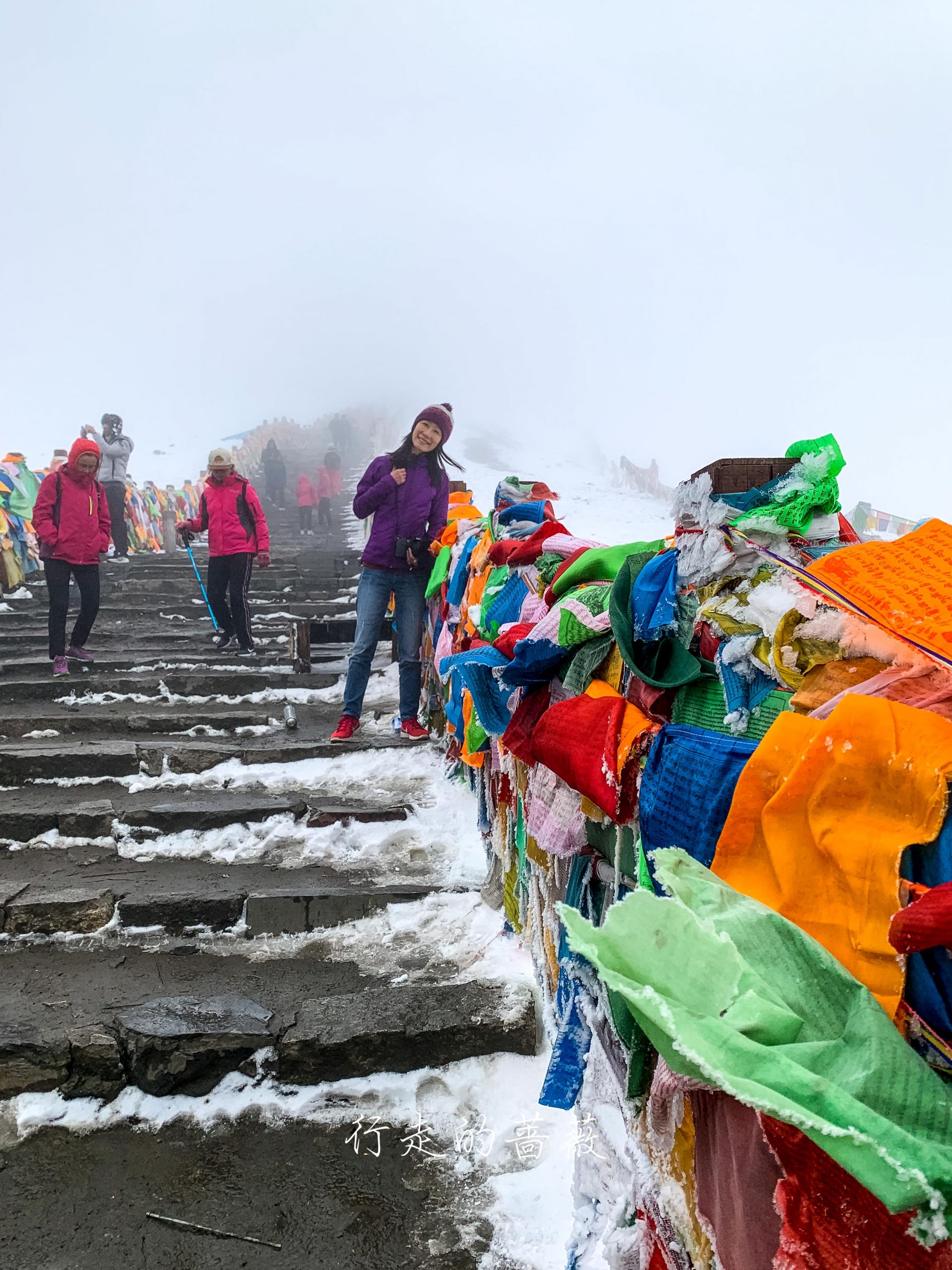 下午的景点是海拔4298米的折多山口,但因为天气原因,我们看到的就只是这样白茫茫的一片了。才一天一下子升到四千多,缓缓地冒着大风和严寒还是走到了最高点留念。越南的赵兄不愧是做导游的,真会拍照,把我们拍的都好高大~