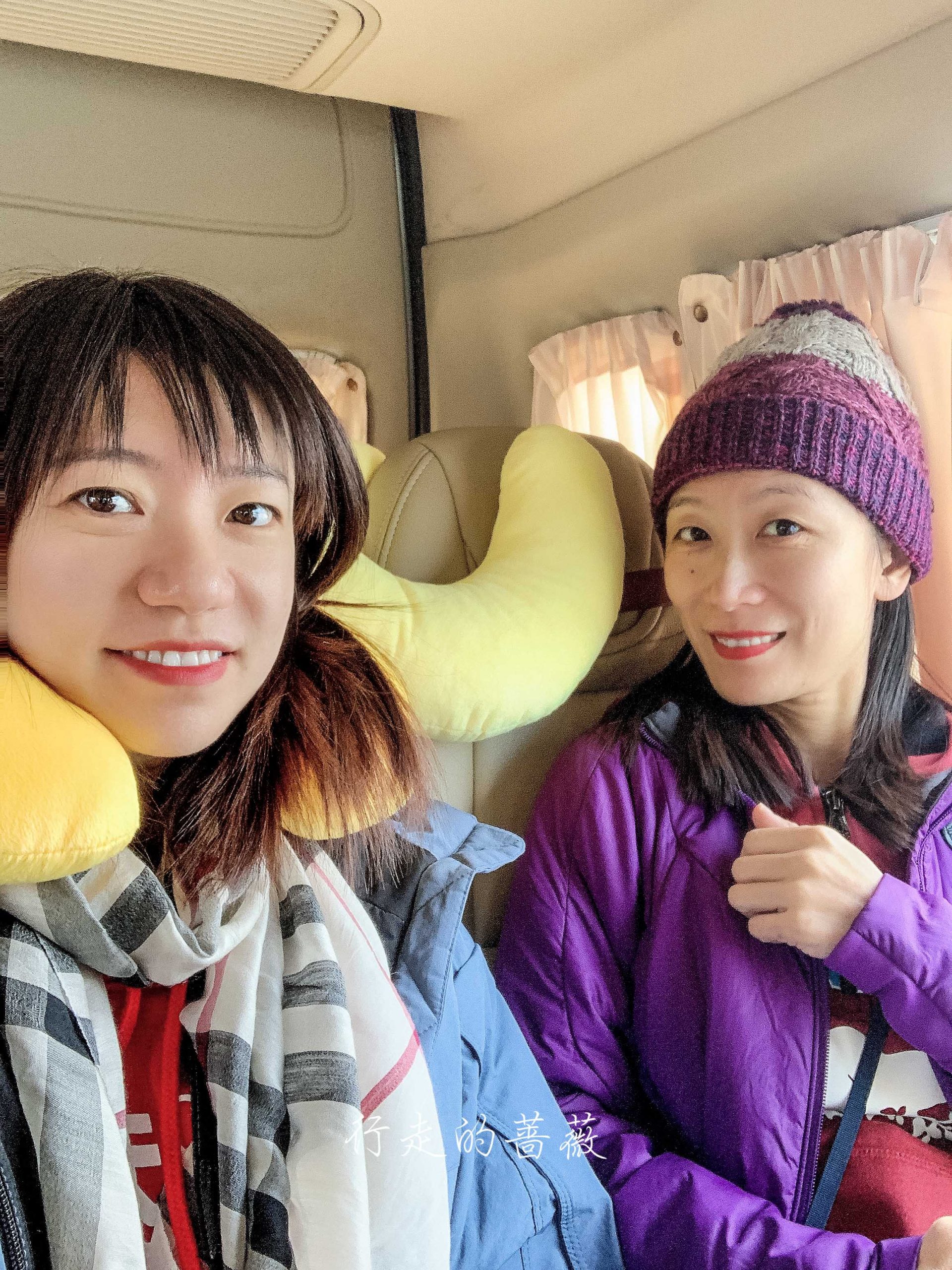 顺利被接到集合的地点,之前还和细细说希望不要到的太晚,能分配到一个好位子。到了车上一看,我们果然是最后两位,所以只有最后一排的两个位置留给我们。唯一庆幸的是,我们的车是非常新的,当时看评论有人说小车团的问题就是车的座位做起来不舒服,还好我们运气好,连司机都说我们享福了。
