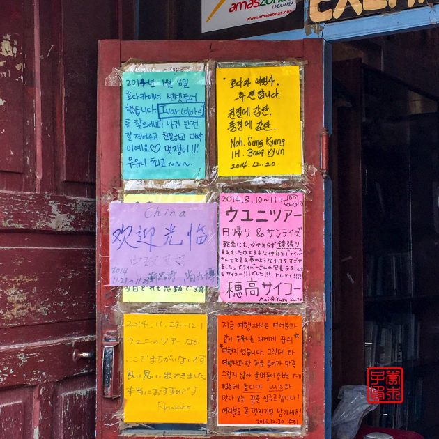 乌尤尼最大的卖点就是世界最大的盐湖,旅行社可以提供日出团和日落团。镇上挤满了日本人韩国人,看到那么多亚洲面孔简直惊呆了!连旅行社门口都各种日文韩文中文的宣传单,我也不知道这个号称天空之境的玻利维亚盐湖到底为什么那么多人喜欢,简直成了网红景点。以前中国还没办法办玻利维亚签证,听说很多旅行者就在智利给旅行社塞大价钱让其带他们”偷渡“过来玻利维亚,就为了看盐湖。还好现在玻利维亚和中国关系好了,签证变得非常容易,就使得更多的中国游客来了。我个人是对这个景点无感,小Q大概受了日本旅游节目的洗脑,非常心水,我们就来了。旅行社工作人员问我你是中国来的吧,听口音能听出来,我是该高兴吗?!东亚三国中,英文最好的是中国没错吧哈哈。