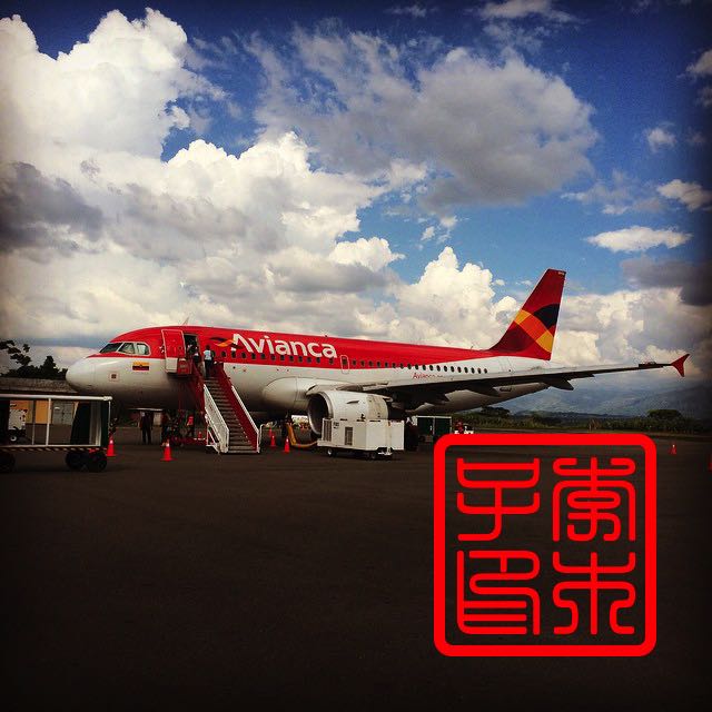 先从Salento坐车到附近的大城市Armenia,很早到机场。天气很热,飞机上人很多,落魄到只混到最后一排的位子。Aviana航空一个小时就飞到了哥伦比亚的首都波哥大。我的大背包已经在超重的临界了,今天一称23.5公斤!忧愁啊。。。在哥伦比亚飞了好几次,都是Aviana,其实哥伦比亚有个本土廉价航空viva colombia,据说非常划算的价钱,很多旅行者都推荐,因为每次都时间什么的不合适我还没坐过。