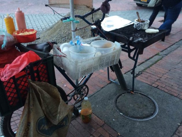 住宿的青旅在La Candelaria的小街,这里是老城,是波哥大最早的街区。出租车不能进,而且地方不好找,司机很久才转到。顺利入住Casa Bellavista Hostel,附近转了转,路边买个哥伦比亚肉夹馍充饥。