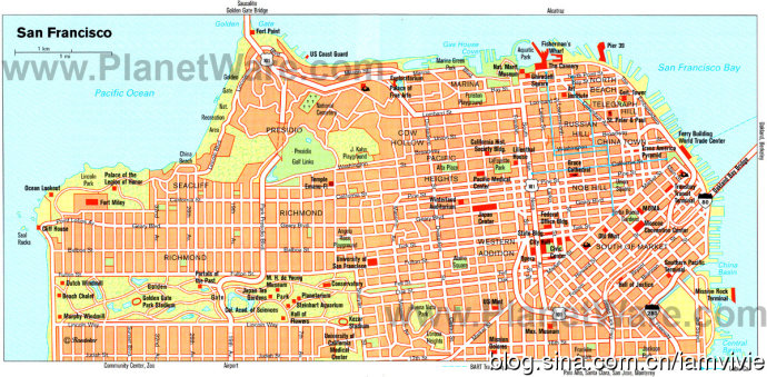 Street的,沿途有不少银杏树也很漂亮。然后可以选择任何一条路到达Fisherman’s Wharf也就是地图D点。渔人码头有游船开往监狱岛什么的,还有穿过金门大桥,可以选择搭乘。