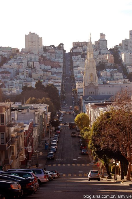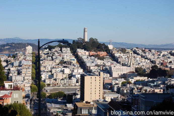 Coit Tower可以买票上去看看,俯视旧金山景色不错。从Coit Tower下来,可以选择走另一条叫做Greenwich