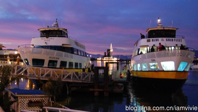 等逛完已经天黑了,去港口看了看轮渡的时间,旁边一个流浪汉说上面时间不准的,要差个五分钟十分钟的,我就忍着严寒盘腿坐在海边等着,否则错过一班就要再等一个消失了,与我一起等船的还有两个带着头巾的修女。。。修女一直在和流浪汉聊天,流浪汉以前是当牧师的,全世界去过好多地方。住在Sausalito得人好像都认识流浪汉和他的狗,路过的时候都和他打招呼,哪里都有奇人呀。轮渡在旧金山不是停靠在渔人码头,是停靠在轮渡大楼,周围有些写字楼和广场,很巧的是回来后,我以前的同事说他要打算搬到旧金山去,他新的办公楼就在那片写字楼里,我还觉得那一片不错的,离哪里都很方便的。出来坐公车,发现Google map还真不错,能告诉你坐哪一趟公车,还有多长时间公车会来,路线是怎样,方便极了,如果高科技解决了电池这个问题,就无敌了,每次出门我总担心我的iPad没有电。