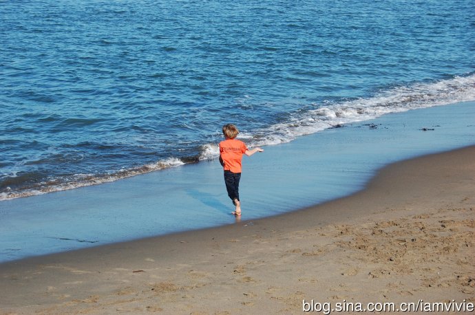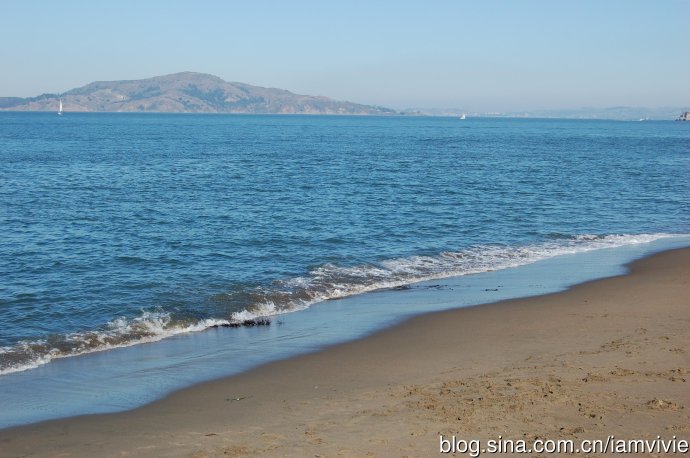 天色已晚,一艘小船停在海里,映衬着对岸的旧金山,超级有意境。海边还有一个钓鱼的老头,他说他从来也不看电视什么的,过着原始的生活,哈哈哈。