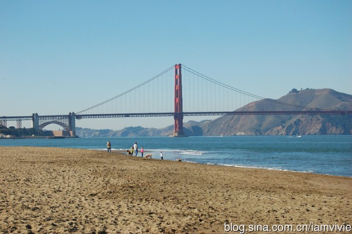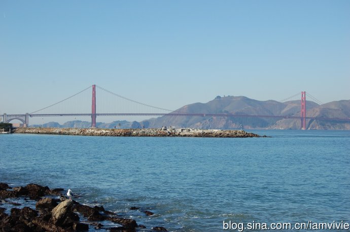 和我同寝室的这个女生也是个早上不起床的,心里高兴的我不行,不会吵我睡懒觉了。约莫着十点多才起,洗漱完还赶得上早餐时间,吃饱喝足去沿着海边逛逛。一出门就可以远眺金门大桥的,因为我就算是住在公园里面的。
