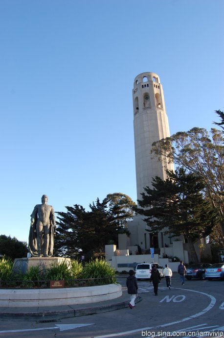 这个coit tower是可以坐电梯到顶端的,好像是几块钱,听见旁边人对同伴说,上面在装修不用花钱去看了,可我到上面也没有发现什么装修。