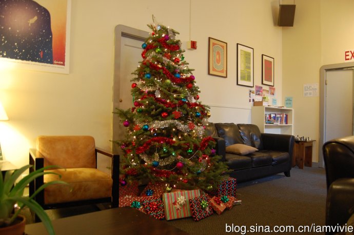 门口大厅的圣诞树,晚上屋里网络信号不太好的时候,我会来这里沙发上团着上网。