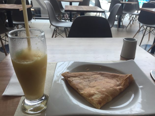 今天来Bellavista和南美群的Lily见面,她是从澳洲过来南美旅行的,正好这时候在圣地亚哥。终于喝到了心心念念的Terremoto,这词本意是地震,就是让你喝完了像地震一样晕晕漂漂,是酒加菠萝冰淇淋,闻起来好强的酒味,喝起来甜甜的还不错,喝了半杯就开始小晕了。原来的喝法是先一升叫地震,再半升叫余震。