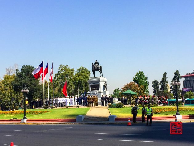 出了地铁站路过Mapocho River旁边的意大利广场,军人们正在举行什么仪式,昨天free walking tour也是经过这里。
