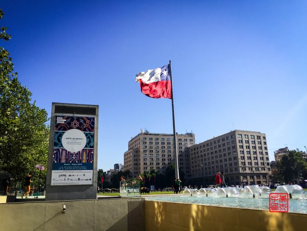 回到城里总统府广场下面是文化中心Centro Cultural Palacio de La Moneda,有表演在彩排,还有些店铺也在里面。红色和蓝色的门透过光看着非常美。