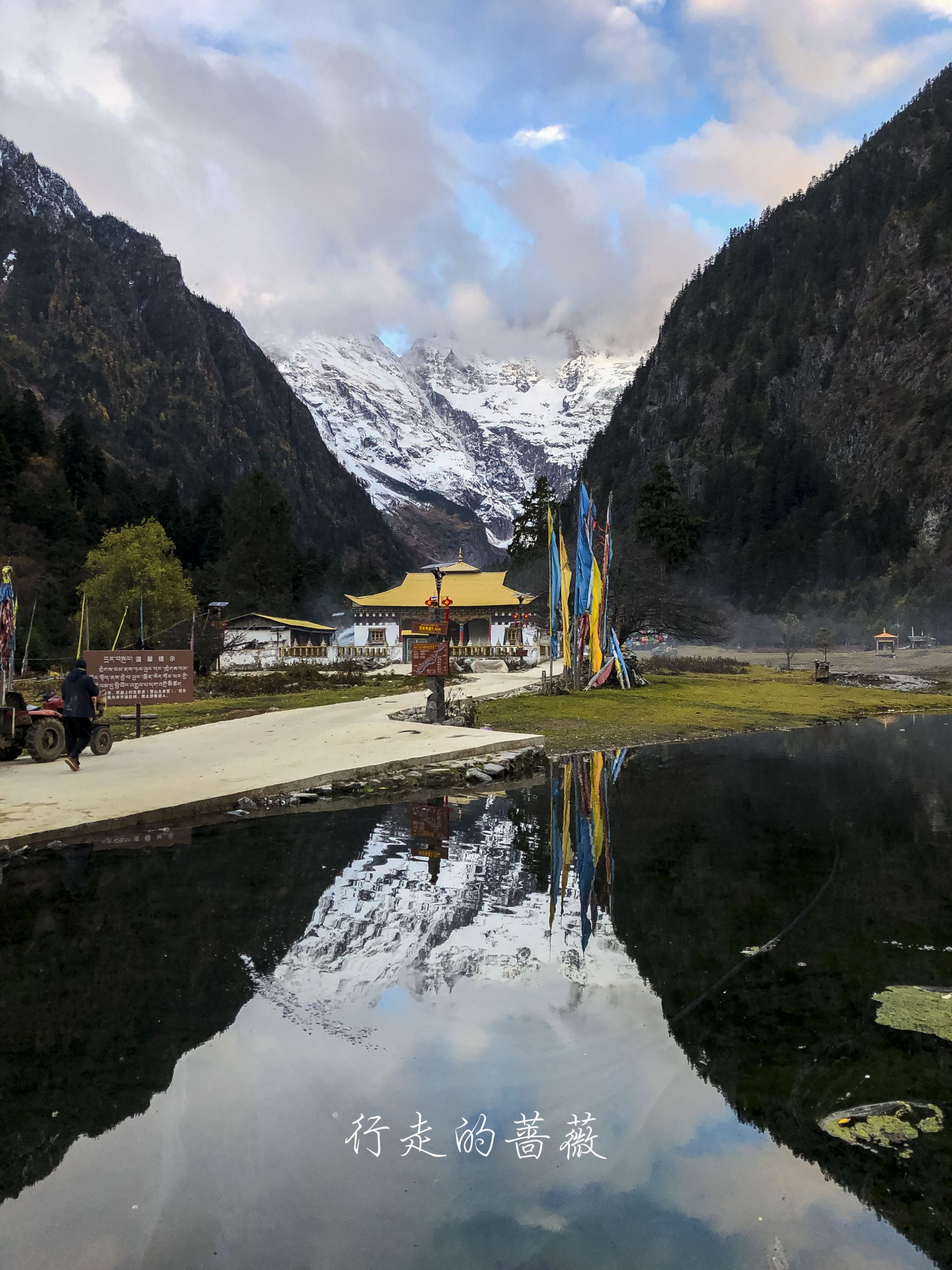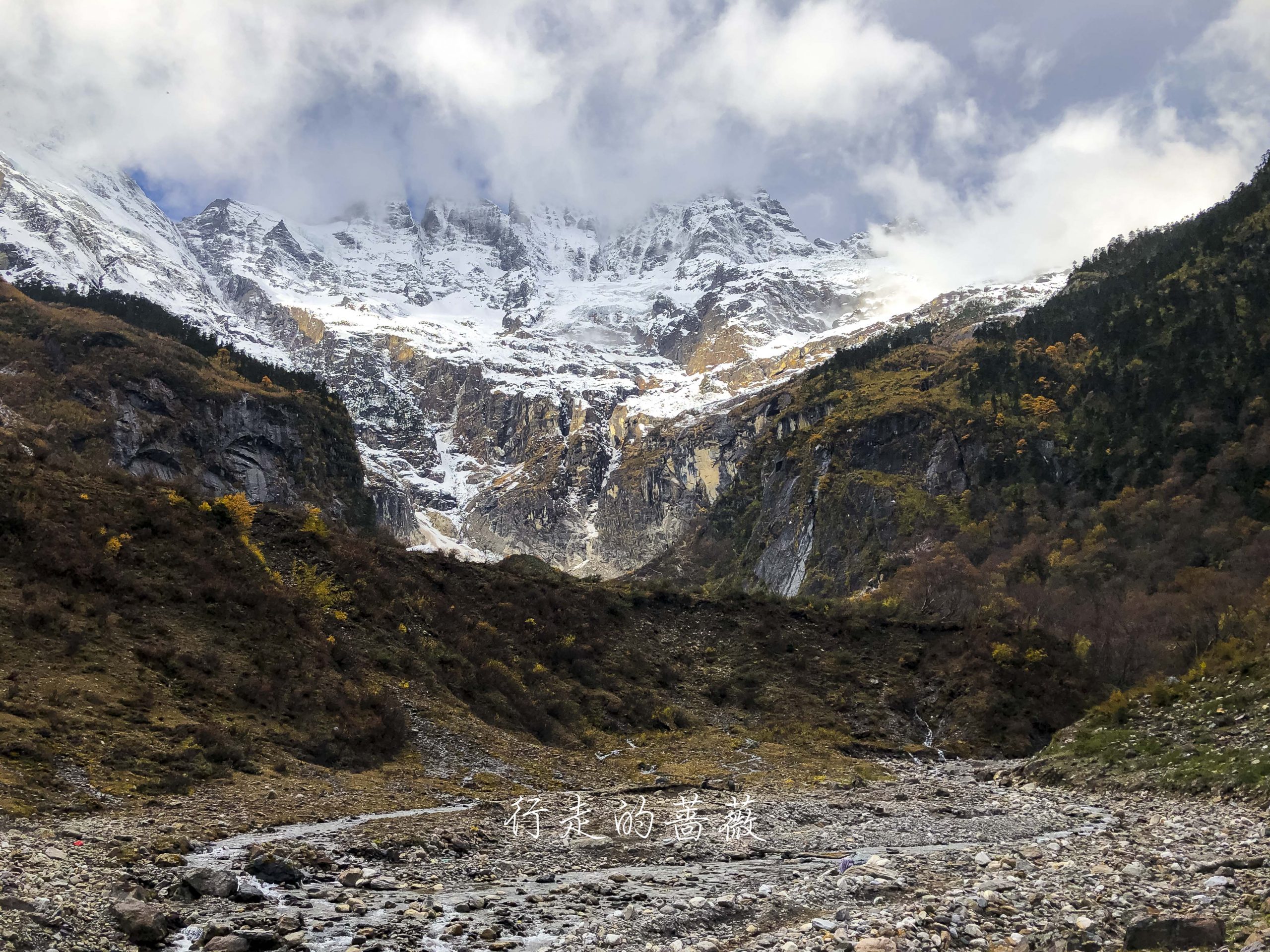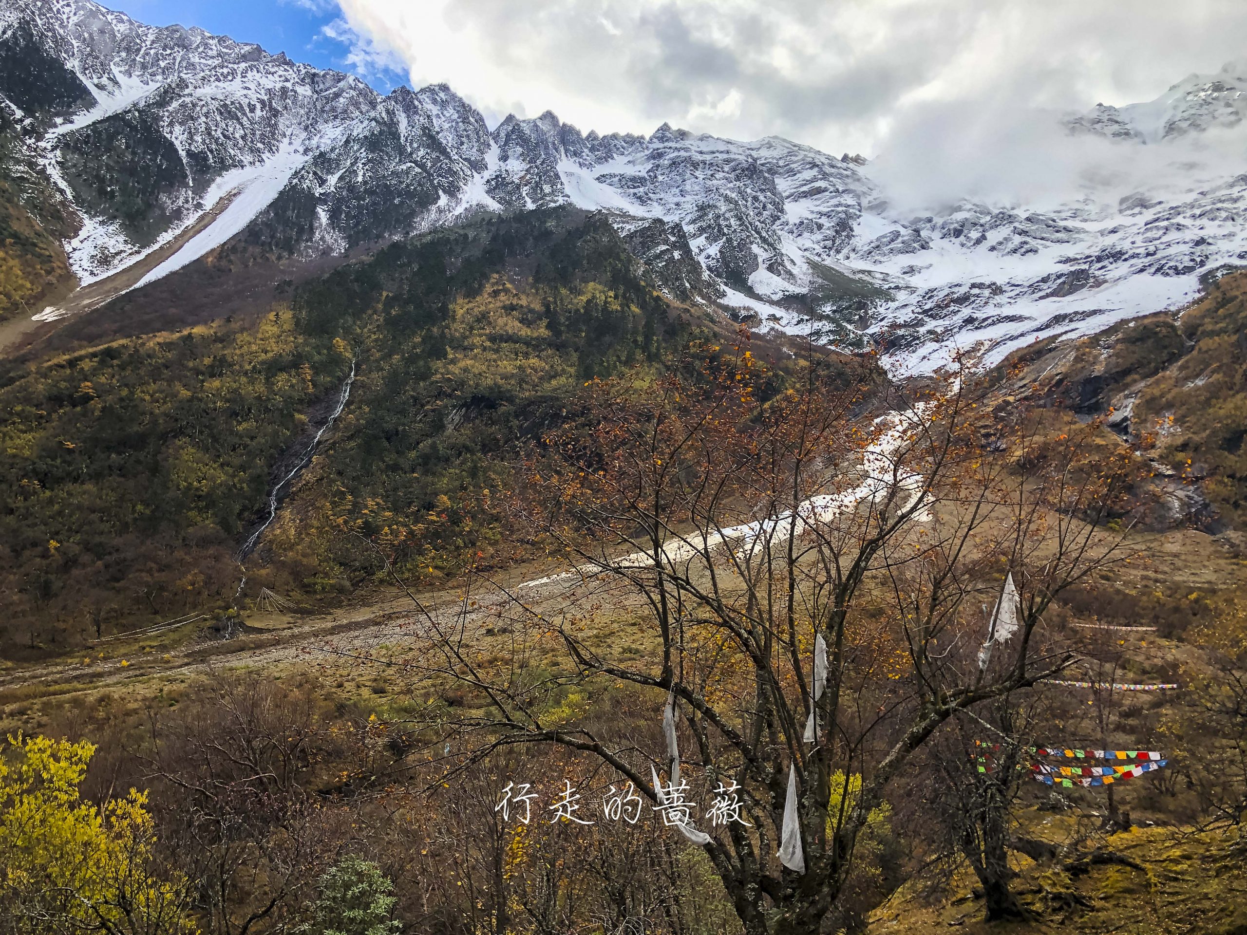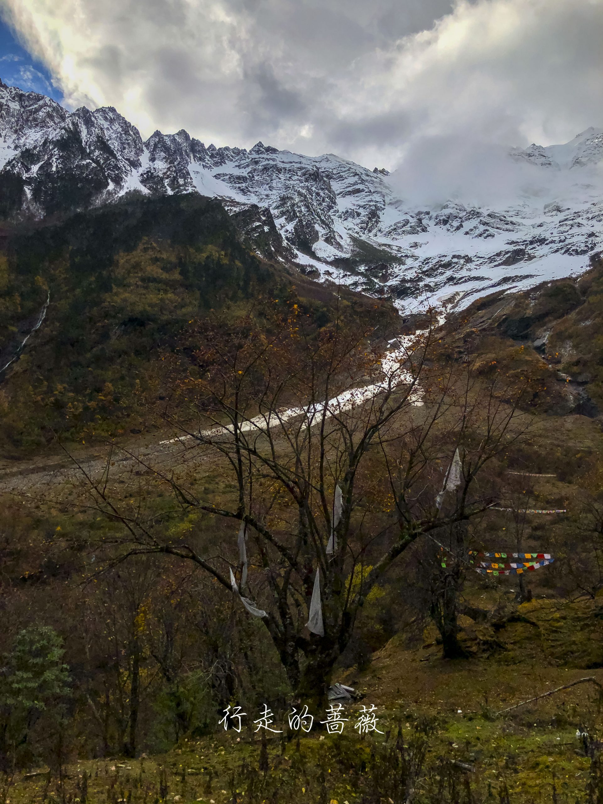 雨崩河边上有非常多的玛尼堆,密密麻麻的真的很震撼。尤其是早上在阳光还没撒到河岸的时候,别有一番庄严肃穆的感觉。据说堆得越大死后的房子就越大。。。沿途一直都能看到雪山,就是云太厚看不到山顶。我一直觉得拍雪山这事儿,确实是可遇不可求的。