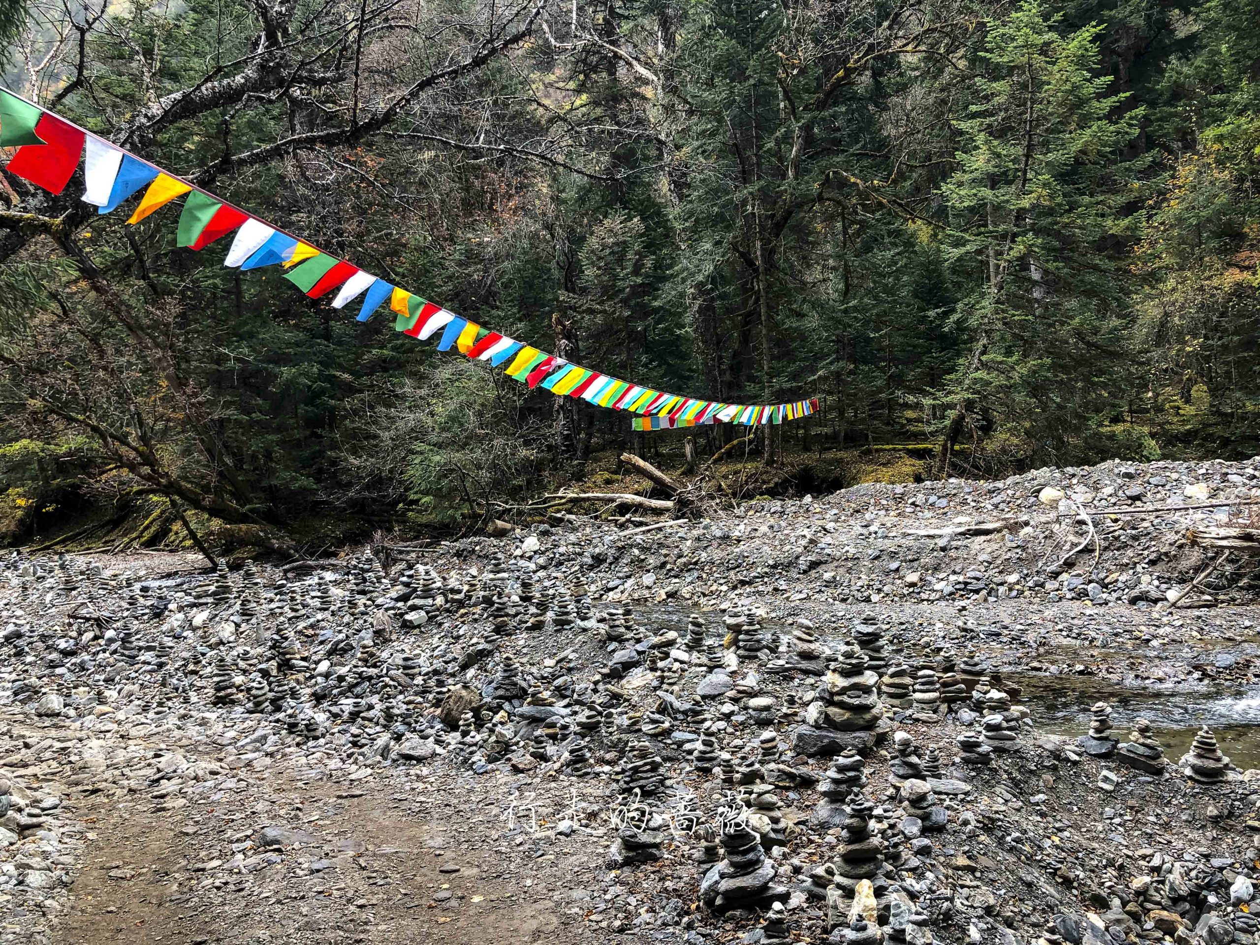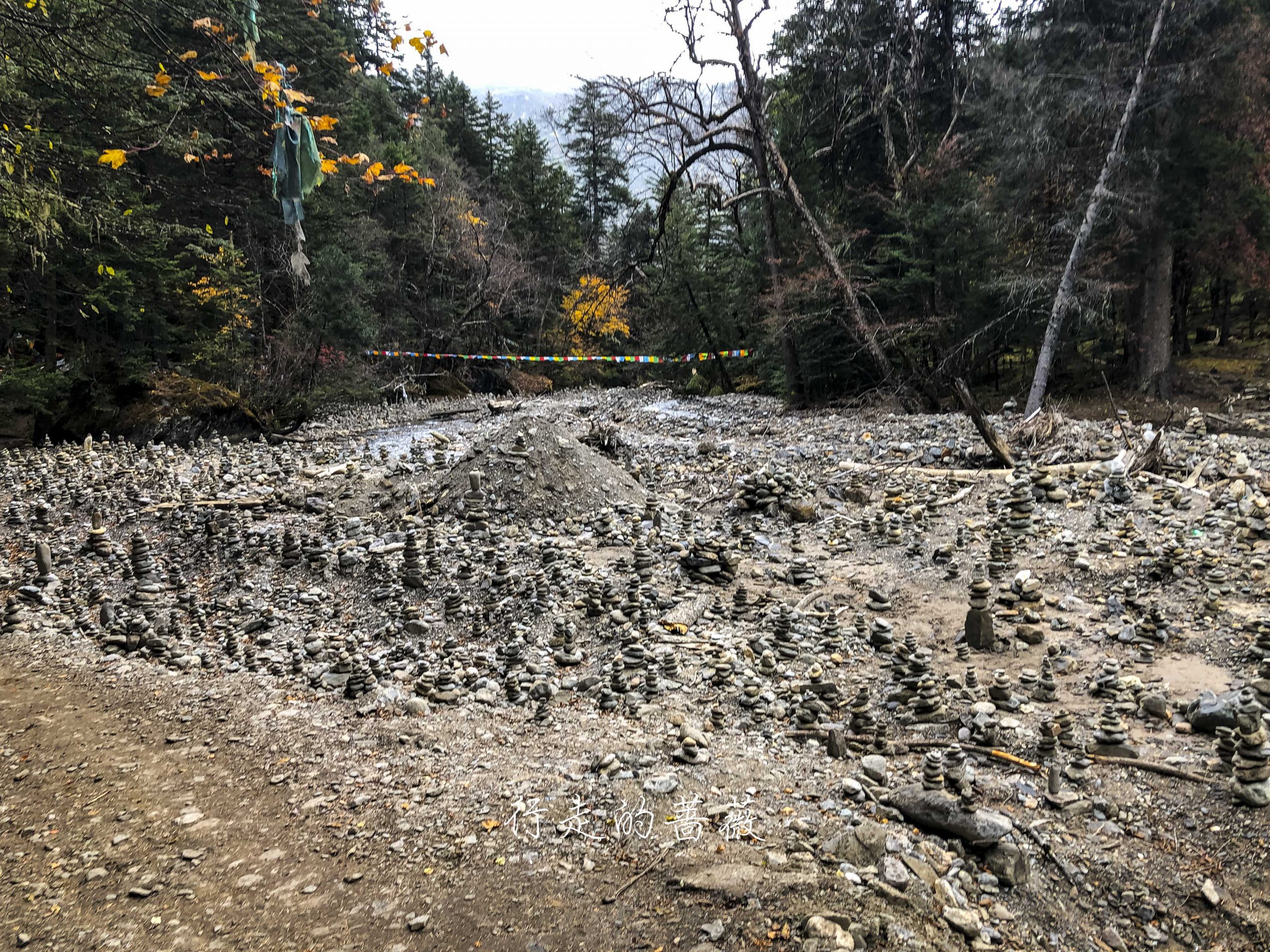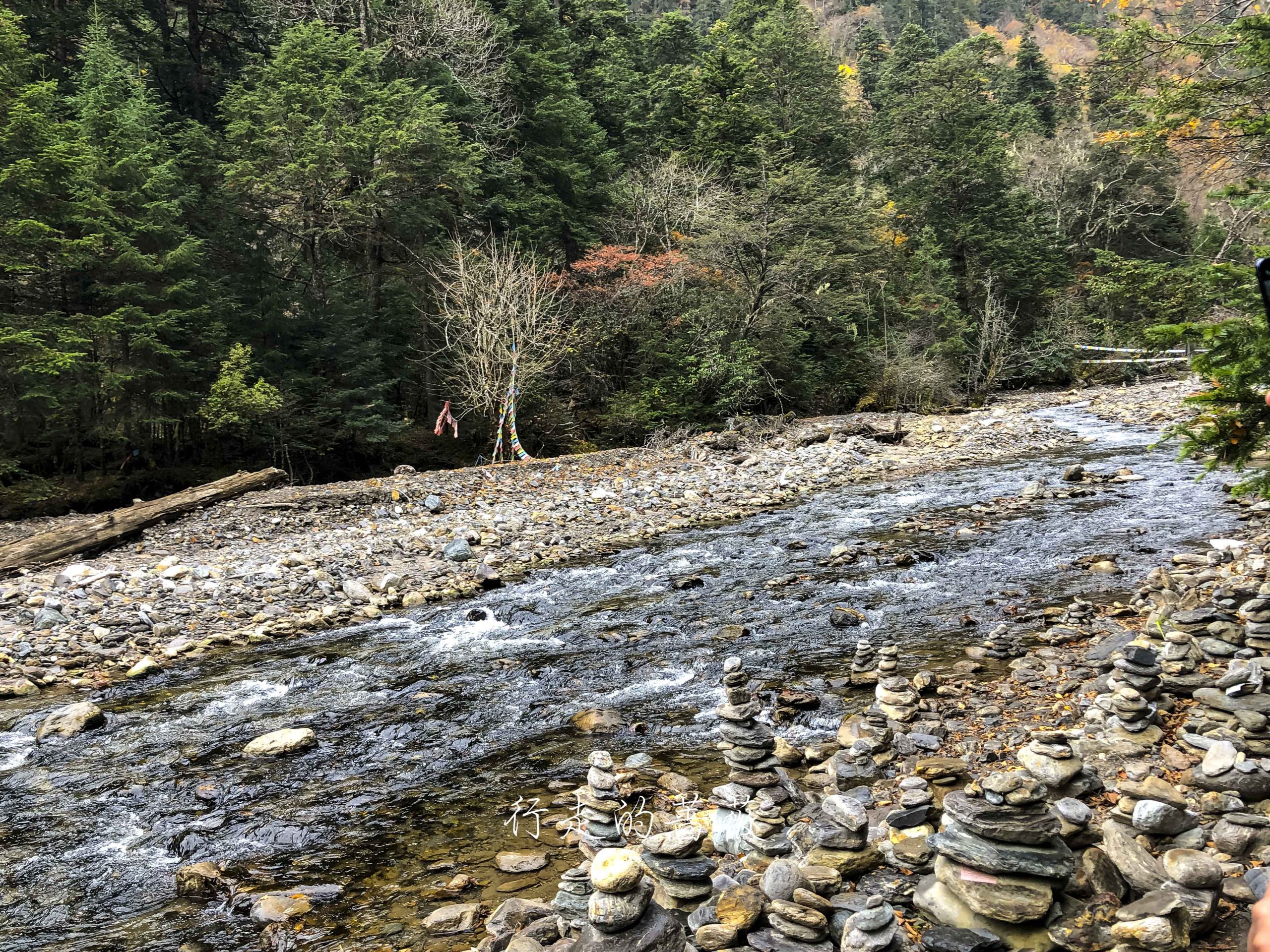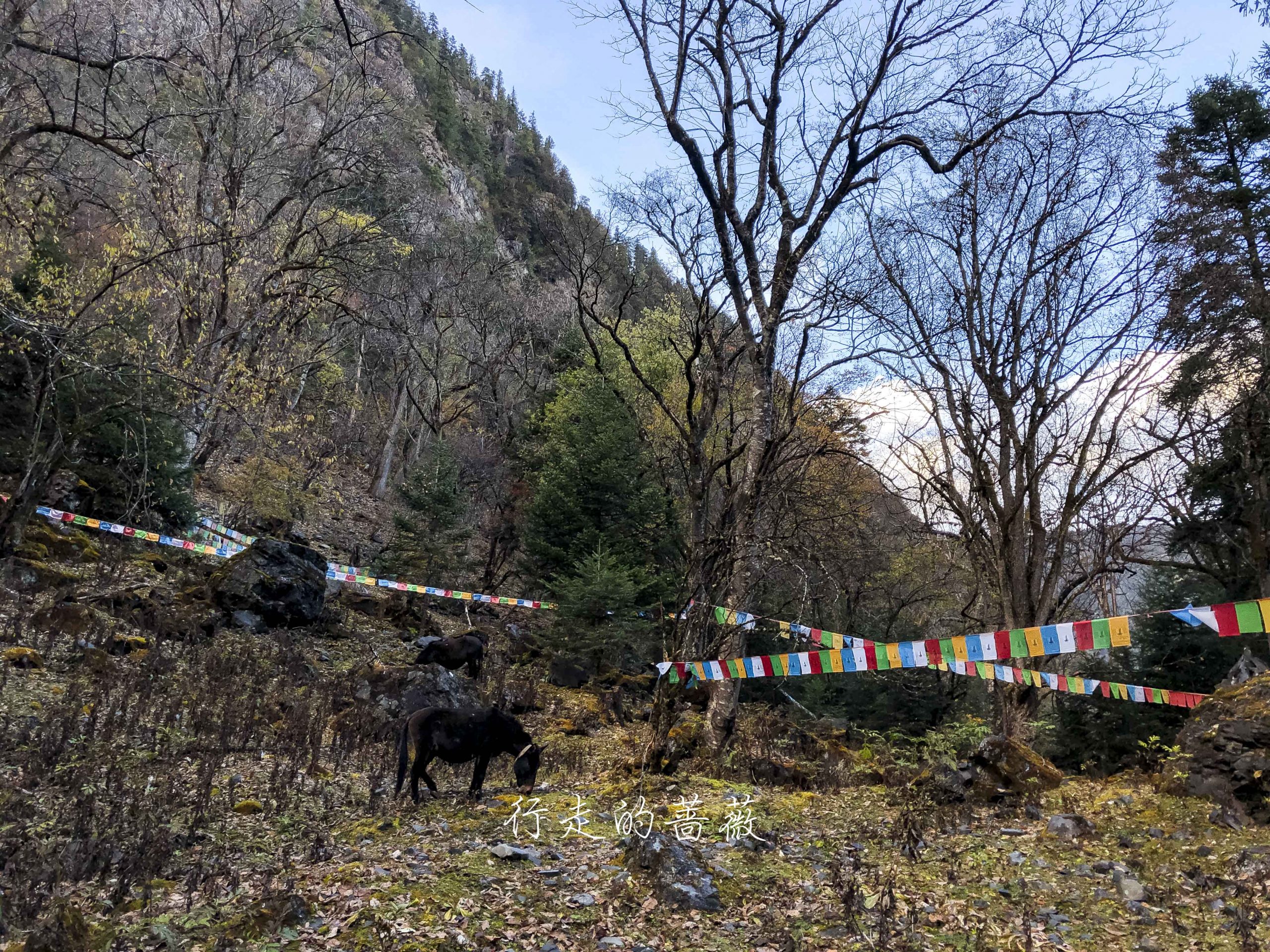 去神瀑的路很好走,而且朝着经幡走也不回迷路。路上有很多已经铺好石板的路段,其余的也已经在修了,感觉下次再来就全变成石板路了,大概是为了方便朝圣者吧。因为不通车,所以运送土和石料都是靠骡子,其实我看的有点心疼,骡子驮着那么沉的石料,而土地有得比较软,走路非常费劲,脚有时候都弯曲到奇怪的角度,好可怜。