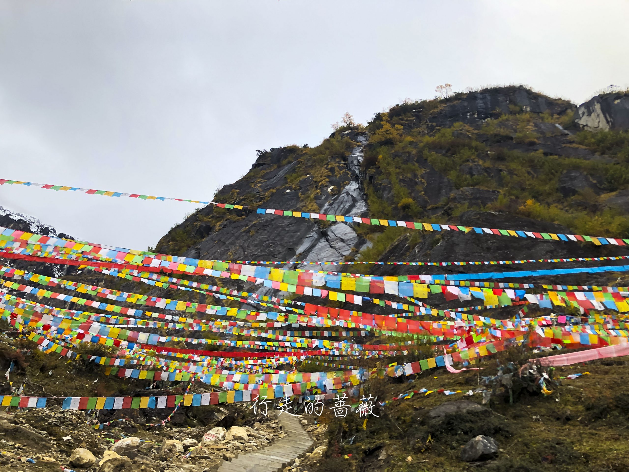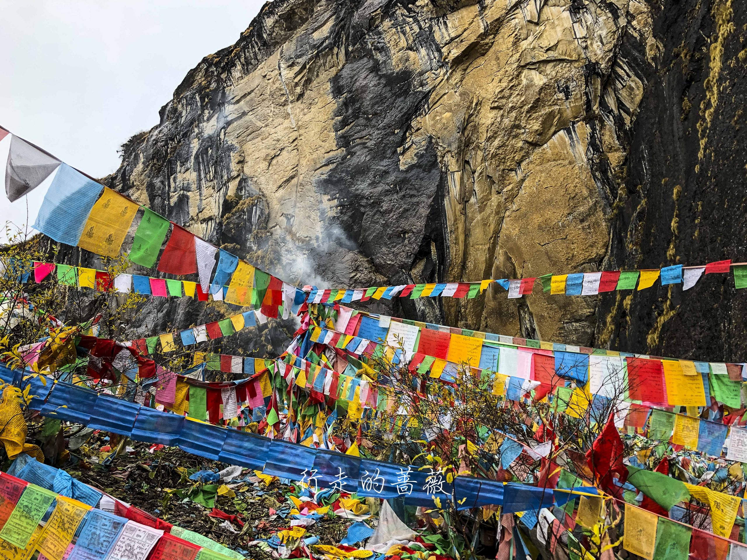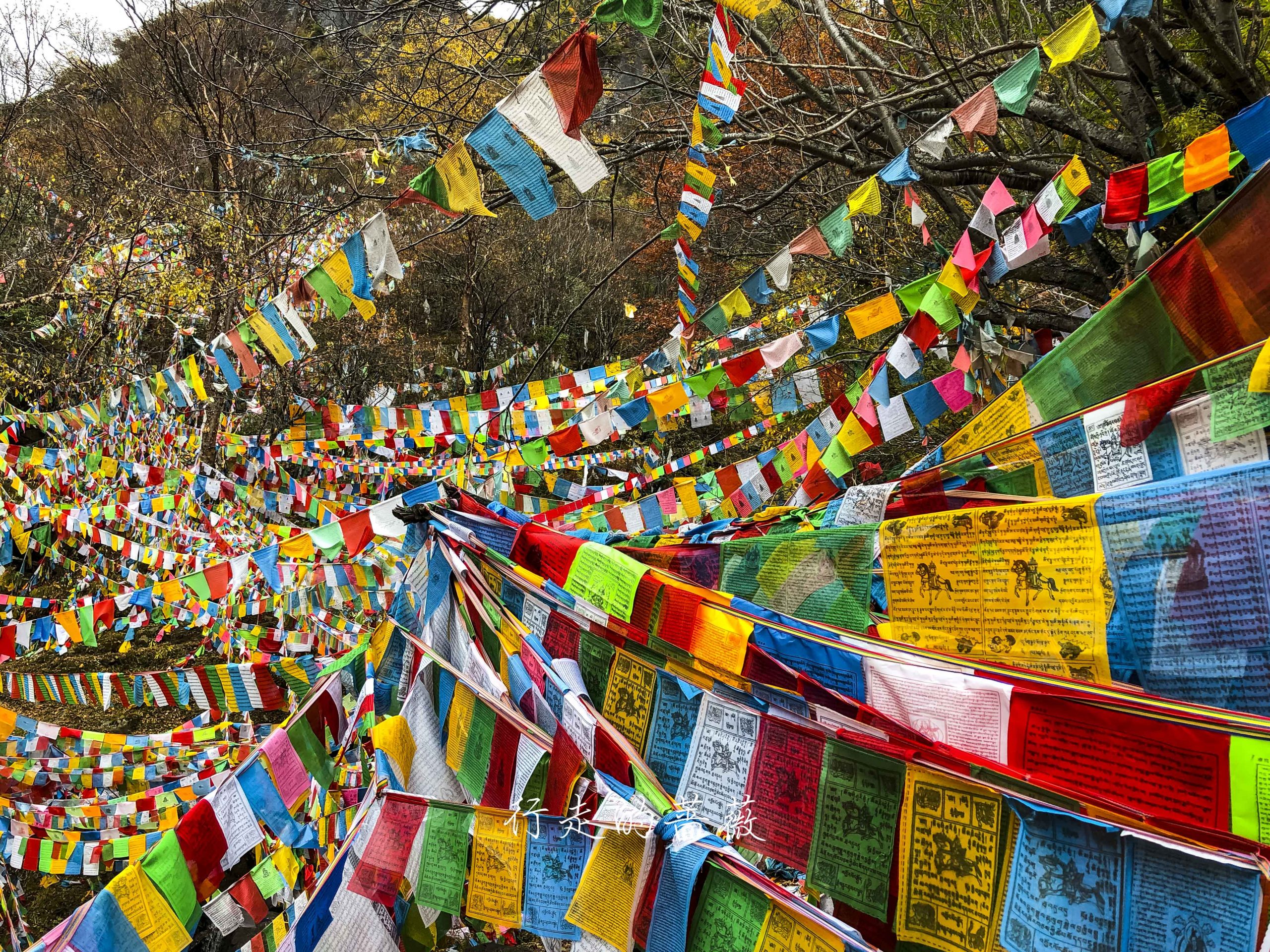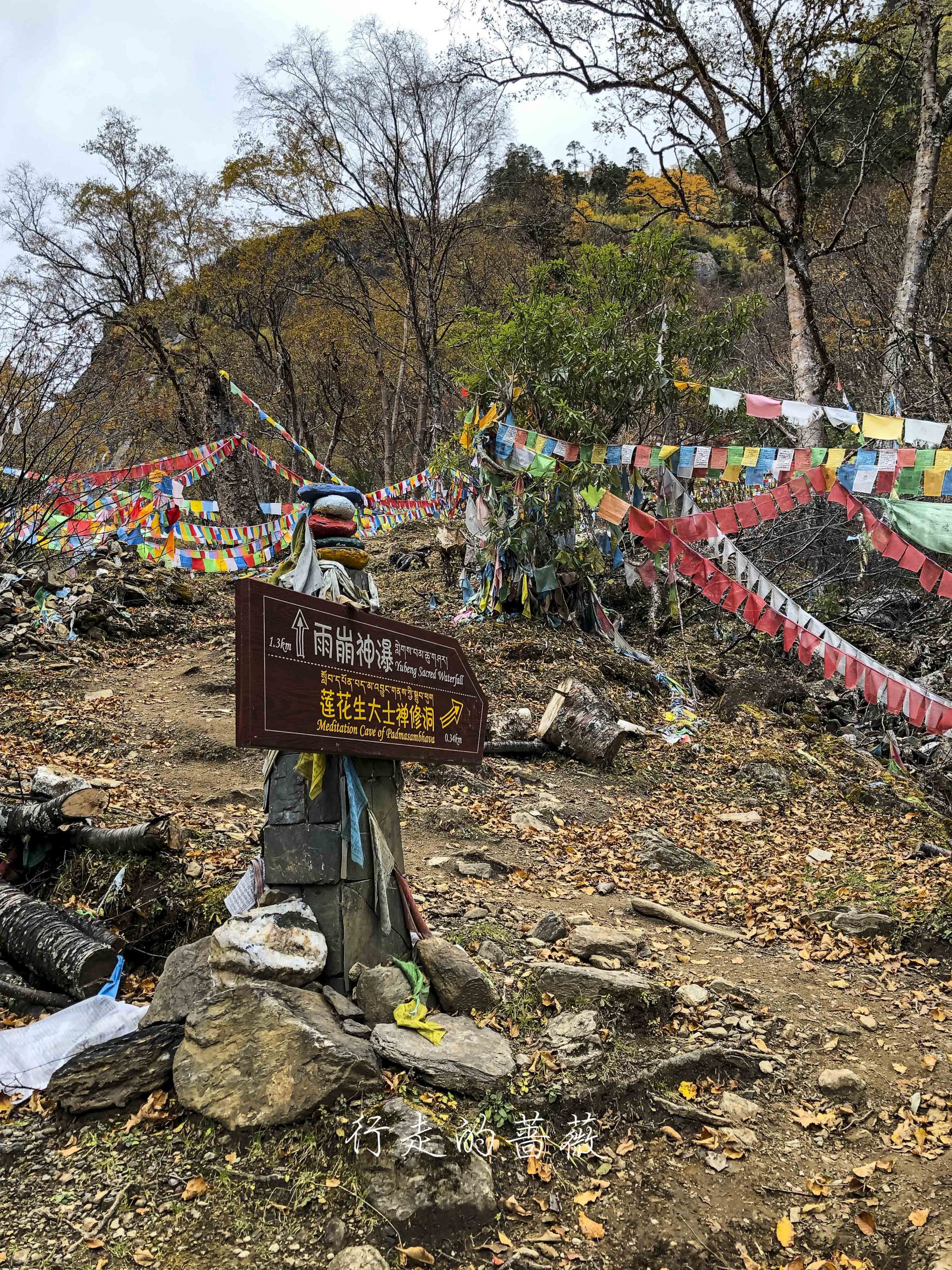 路上非常震撼的是漫山遍野连绵不断的经幡,应该都是藏民来朝圣的时候供奉的。我们沿途也碰到一个藏族家庭,带着年迈的老奶奶一起来神瀑,虽然爬山爬的很辛苦,但是还是坚持到了山顶,信仰的力量是很令人敬佩的。