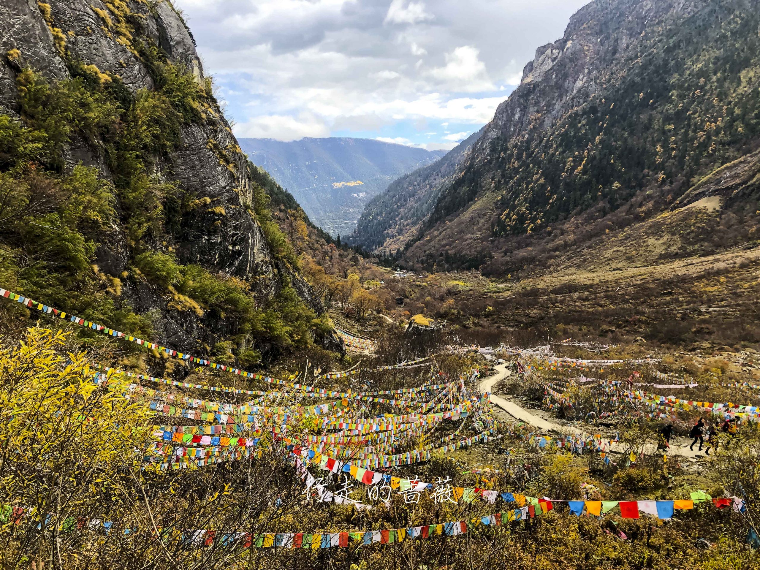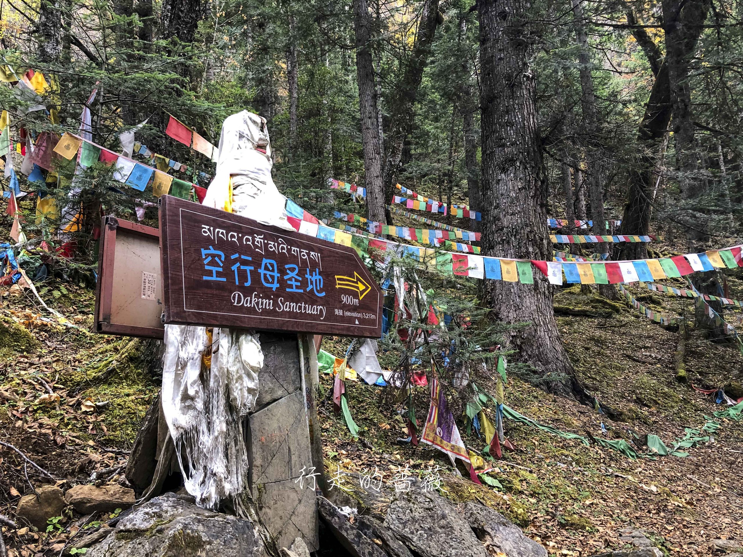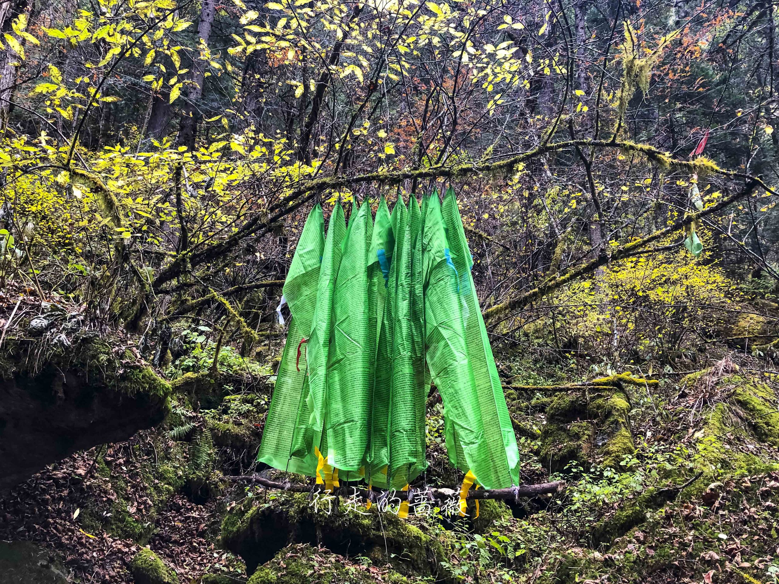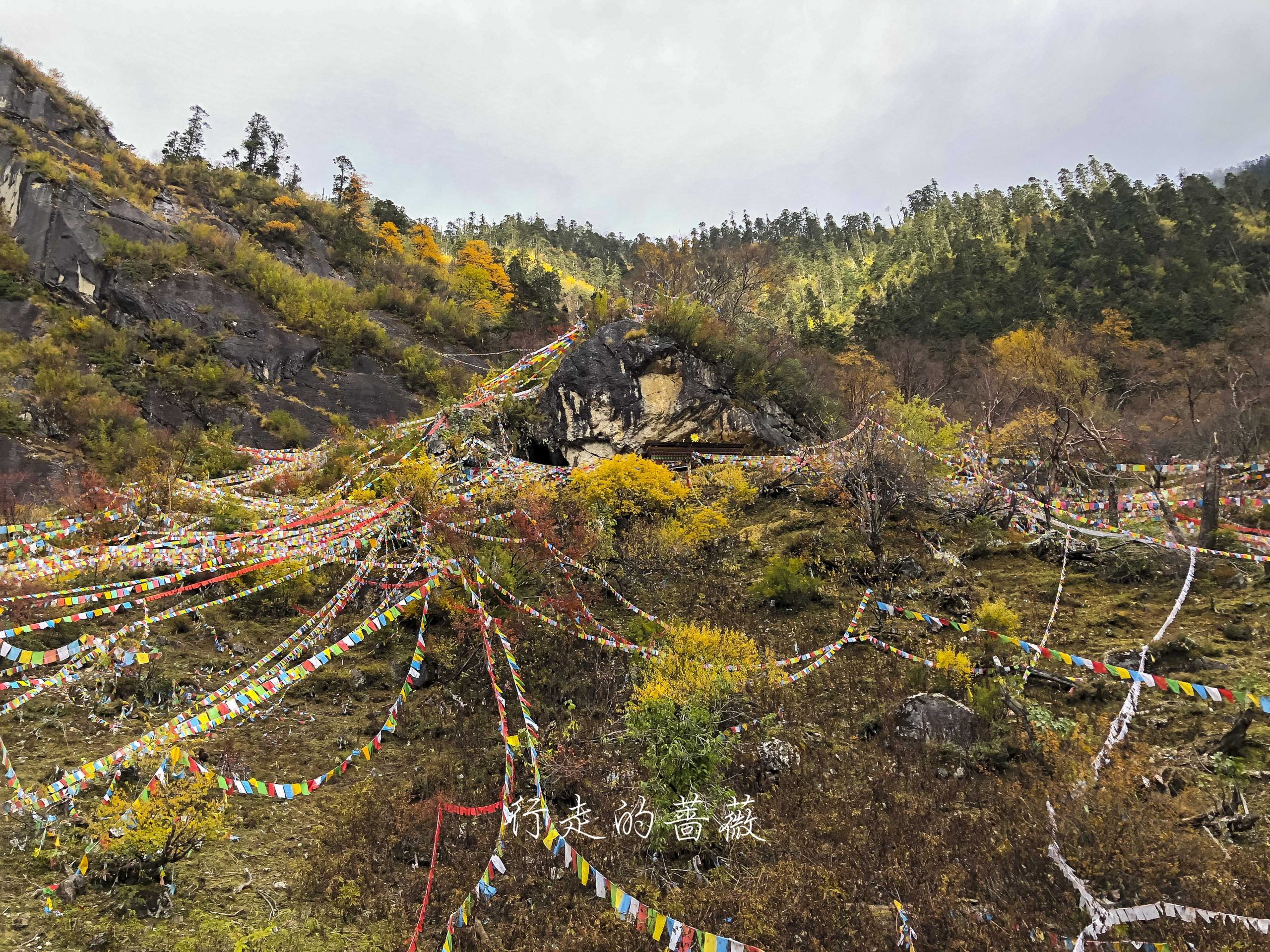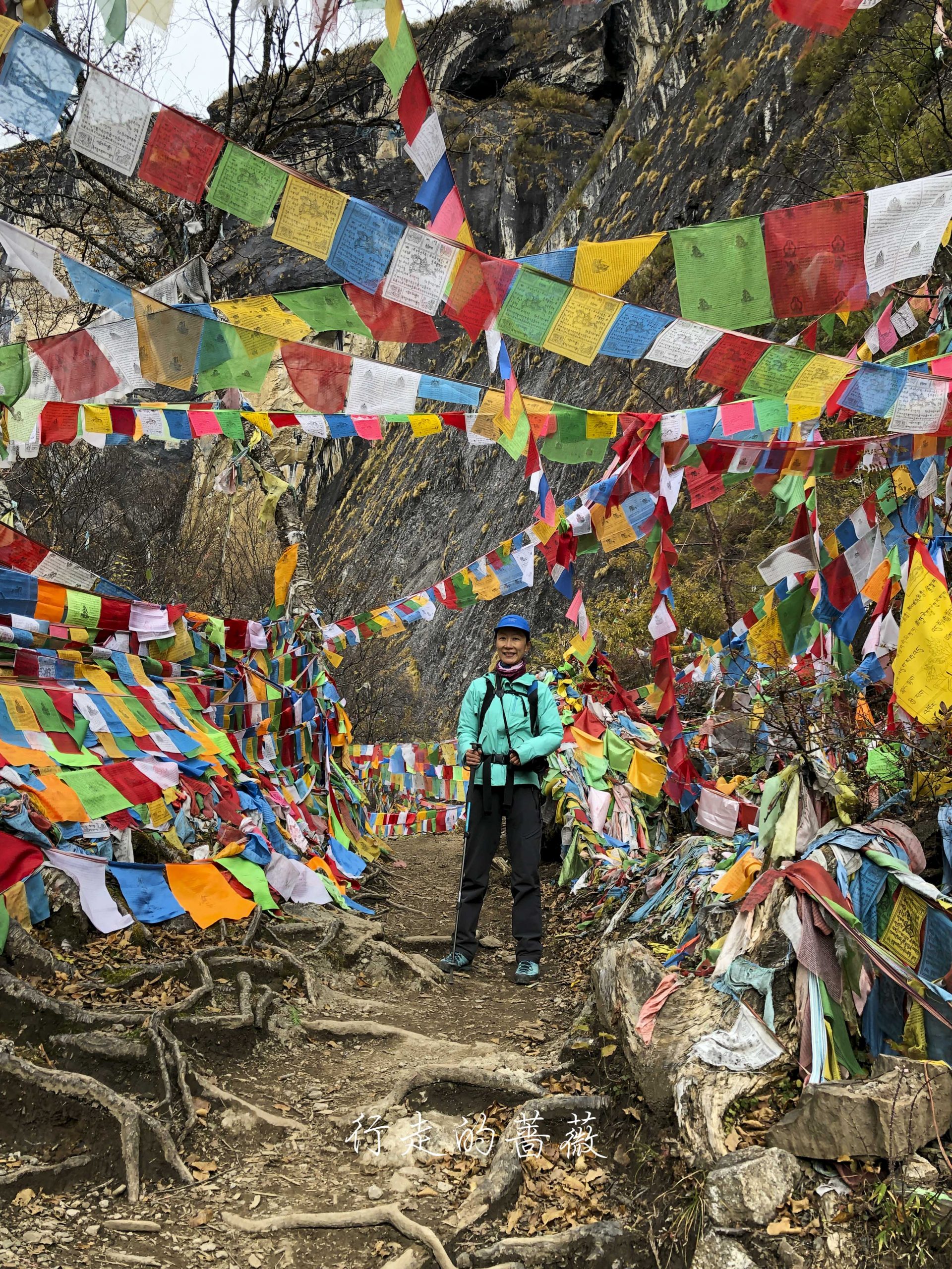 路上非常震撼的是漫山遍野连绵不断的经幡,应该都是藏民来朝圣的时候供奉的。我们沿途也碰到一个藏族家庭,带着年迈的老奶奶一起来神瀑,虽然爬山爬的很辛苦,但是还是坚持到了山顶,信仰的力量是很令人敬佩的。