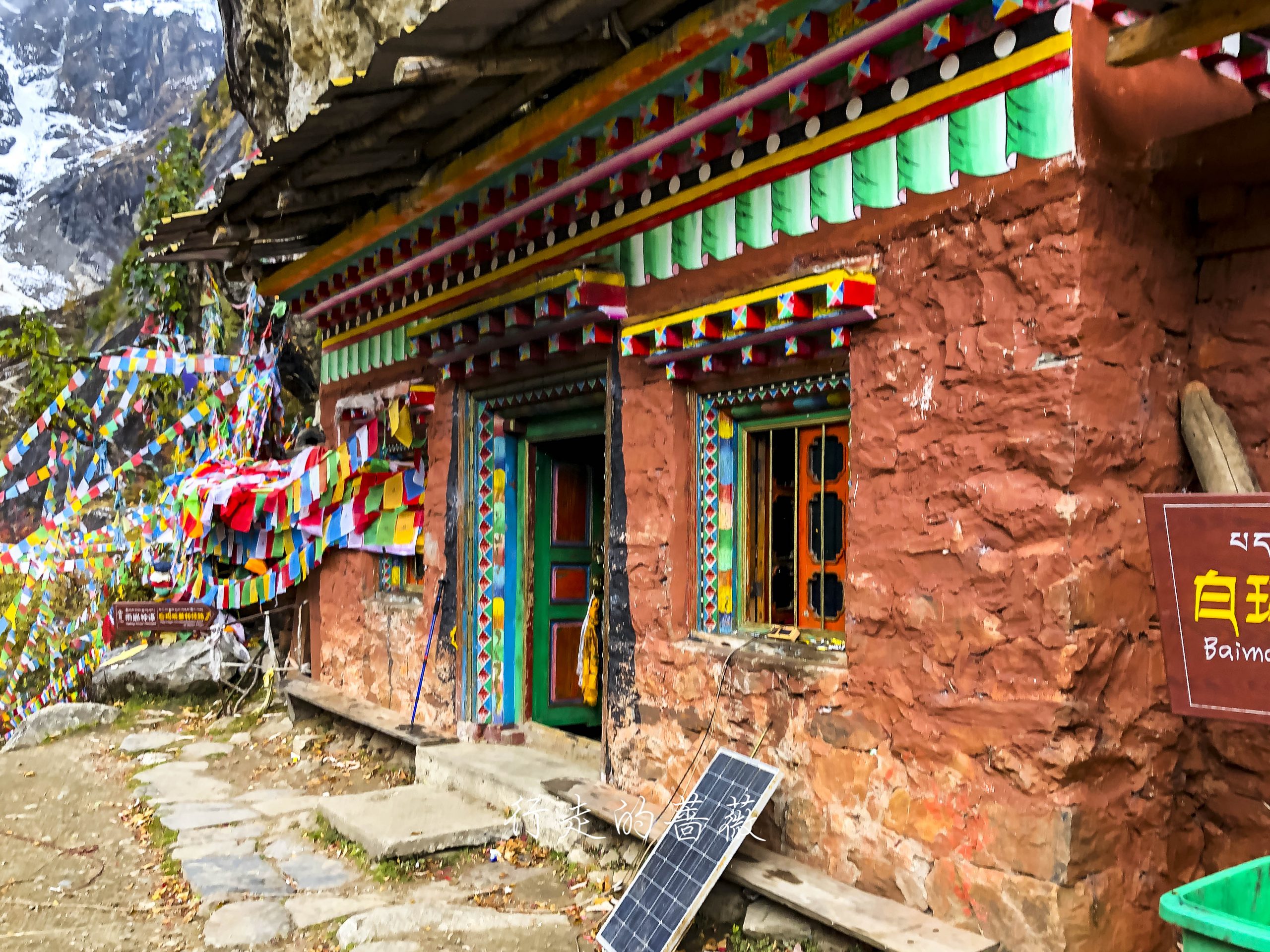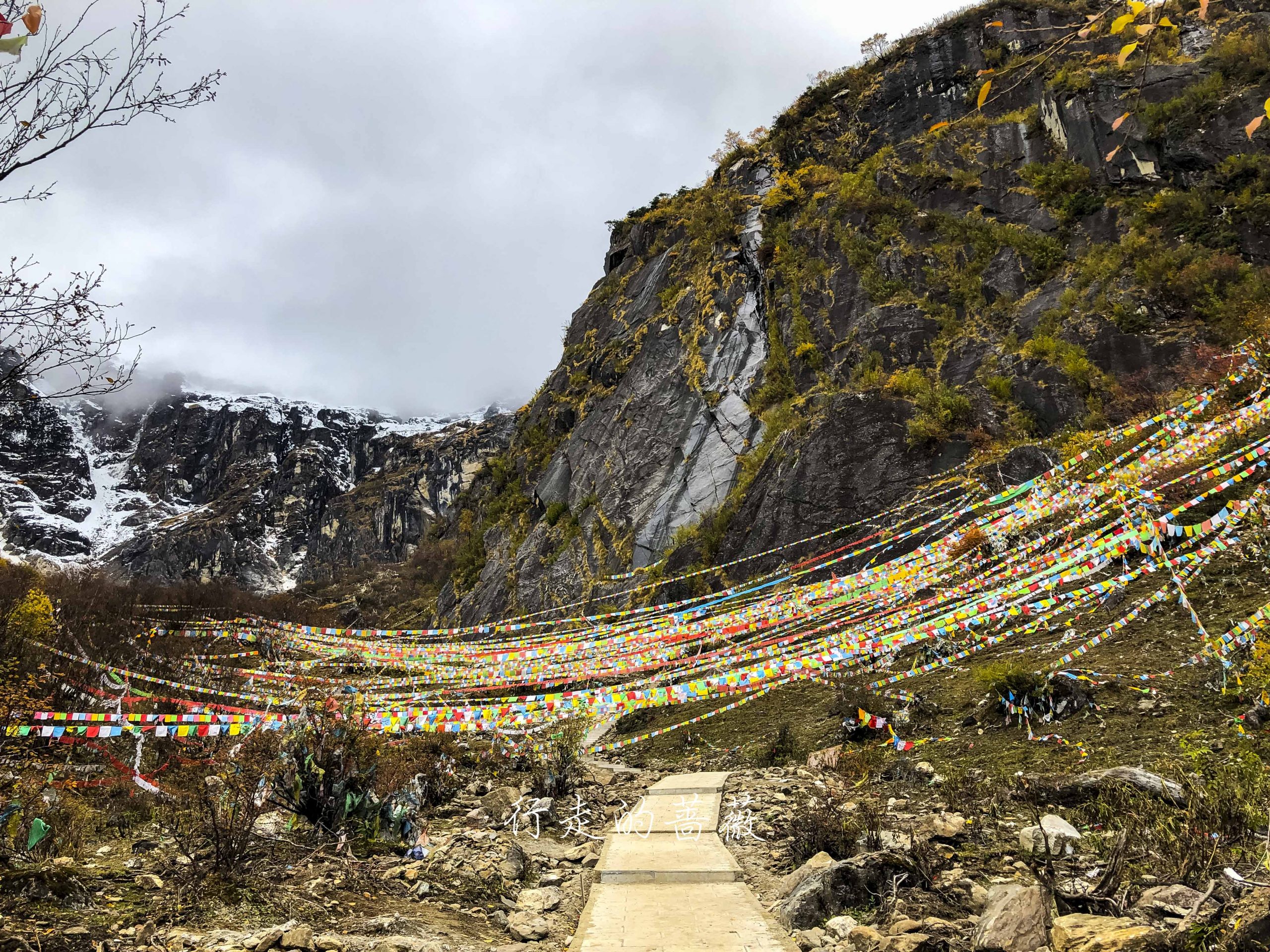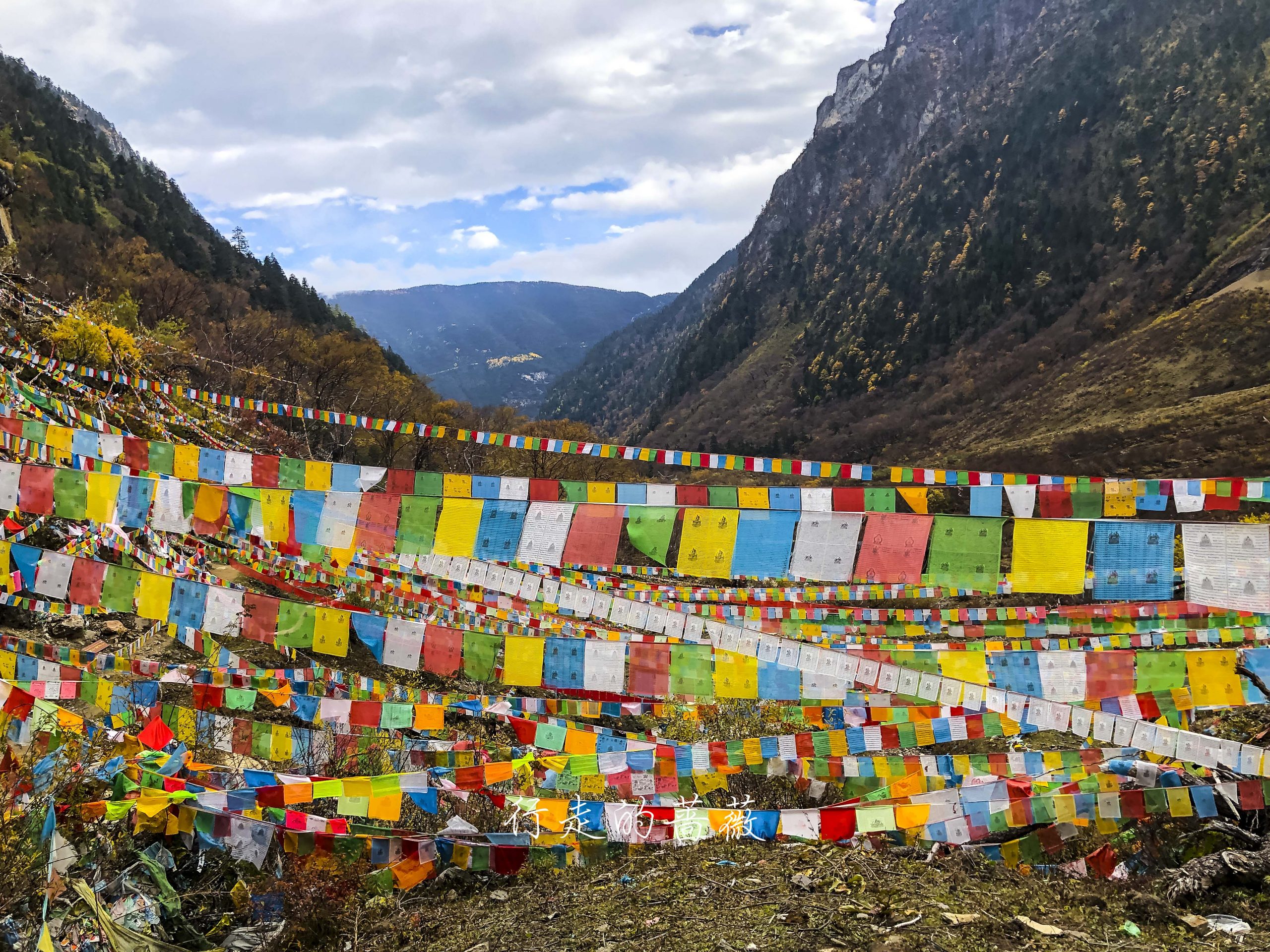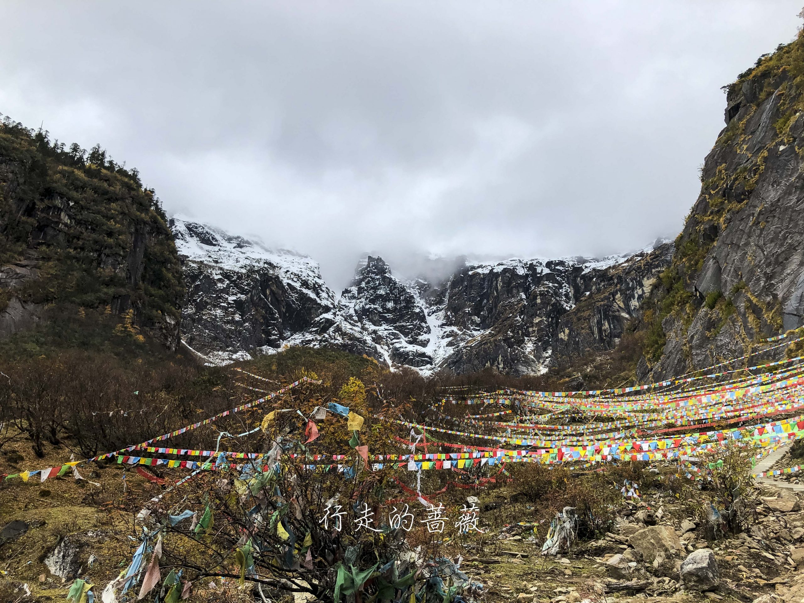 路上非常震撼的是漫山遍野连绵不断的经幡,应该都是藏民来朝圣的时候供奉的。我们沿途也碰到一个藏族家庭,带着年迈的老奶奶一起来神瀑,虽然爬山爬的很辛苦,但是还是坚持到了山顶,信仰的力量是很令人敬佩的。